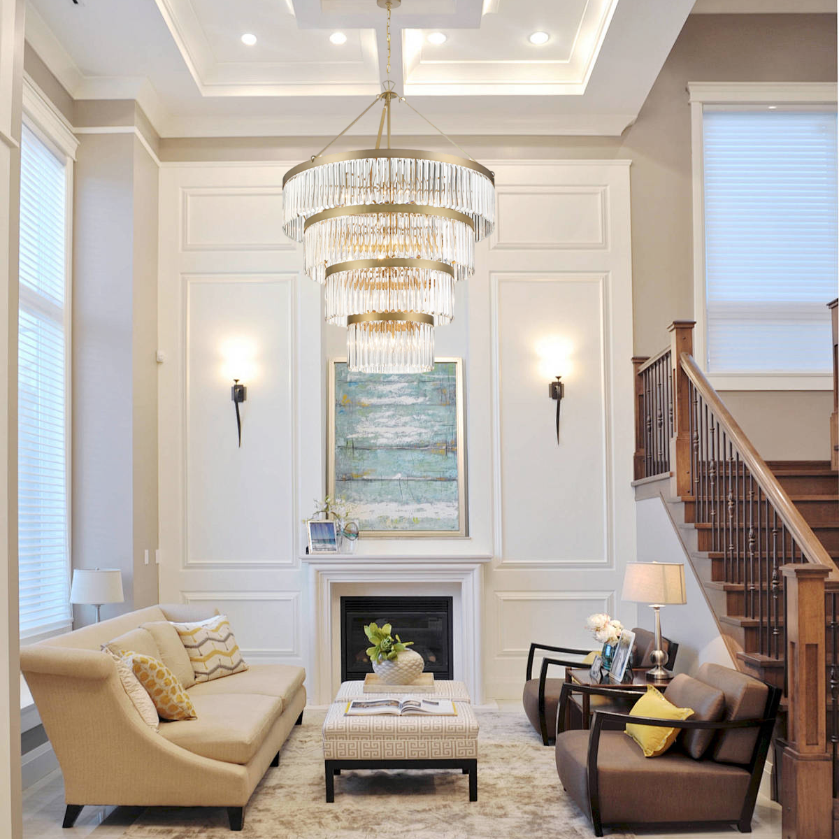 Art Fabric Lamp Shade Rhode 2-Tier Round Chandelier 48"