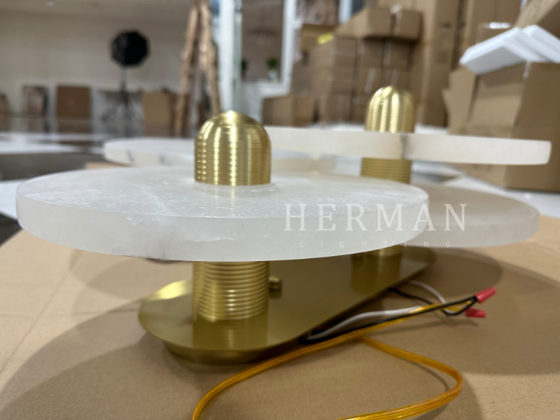 The material of alabaster is Metal & Alabaster, this series is a simple design with a modern style, its stylish style highlights its beauty and makes it give a warm and natural feeling while ensuring the light effect Feel.