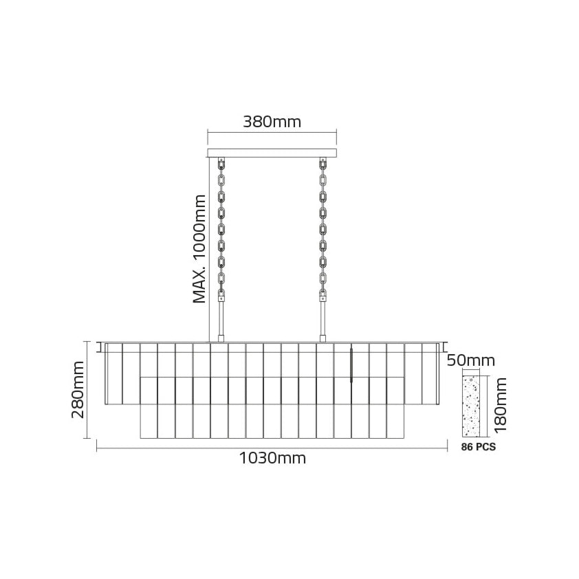 Handmade Art Crystal Glass Clarissa Rectangular Chandelier