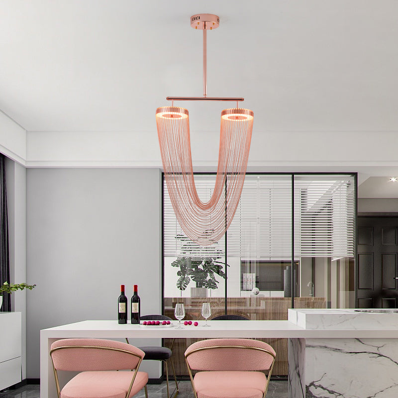 Red Aluminum Chain Tassel Pendant Lighting Diameter 20"