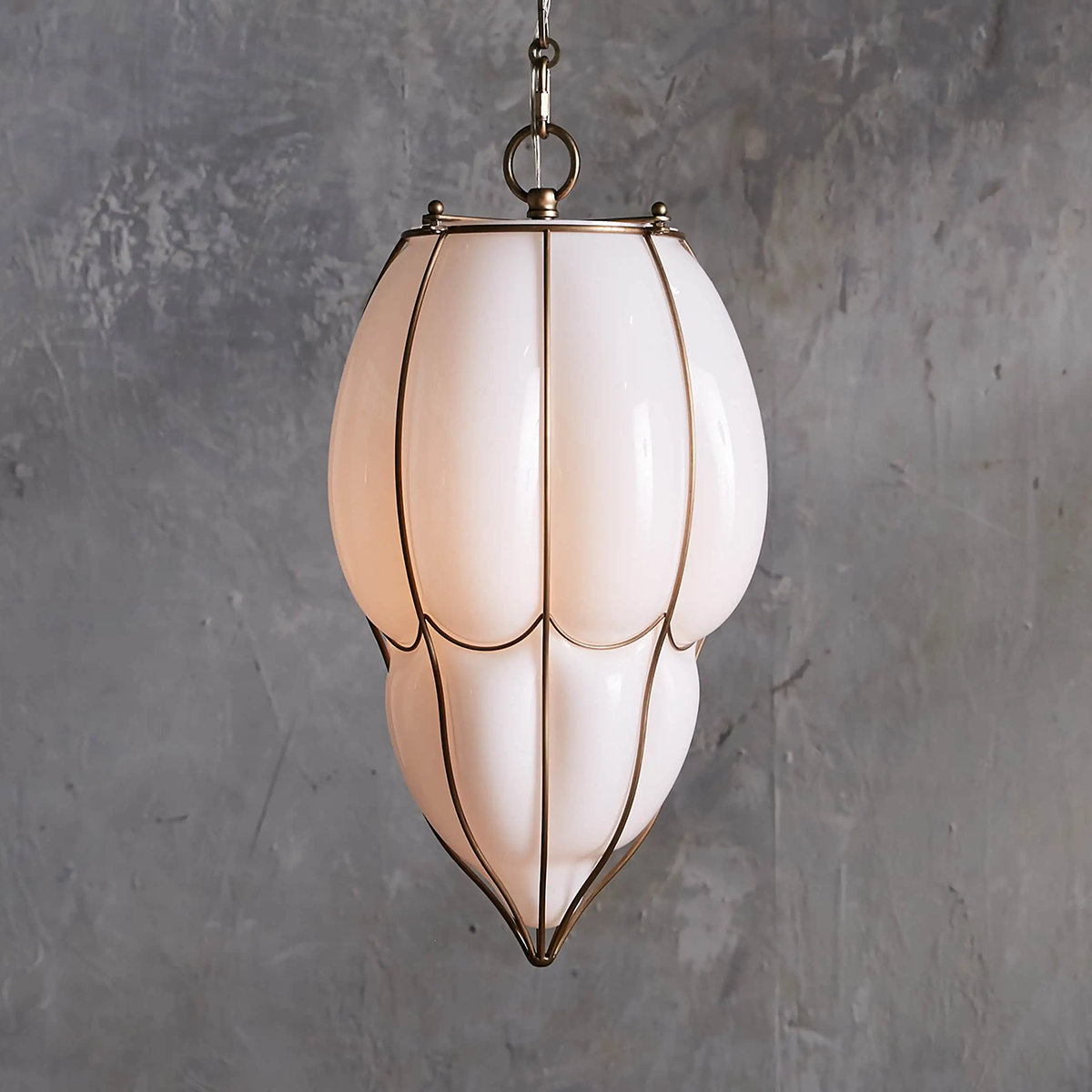 HAND-CARVED ALABASTER CYLINDER PENDANT 14"