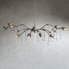 Hand-cast by artisans from solid iron, the Viticcio chandelier resembles garden vines fresh from the rain. The hand-painted silver finish highlights the exuberance of the flowers, and hand-strung crystals dangle to scatter drops of light across your space.