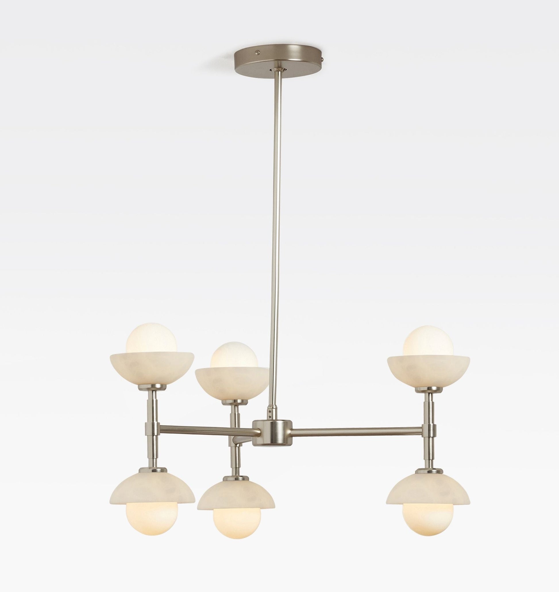 The material of alabaster is Metal & Alabaster, this series is a simple design with a modern style, its stylish style highlights its beauty and makes it give a warm and natural feeling while ensuring the light effect Feel.