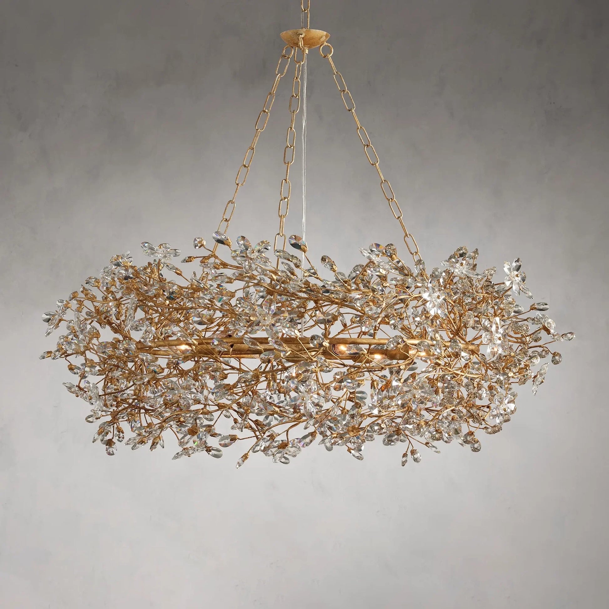 Luxurious crystal flowers and droplets illuminate each branch of our elegant Fiore lighting collection. Each piece is crafted in solid iron by our artisan partners from Italy and hand-polished with silver or gold leaf, inspired by the beauty of nature and showcasing quality craftsmanship. From the dining room to the entryway, Fiore will be a highlight and add charm to any space.