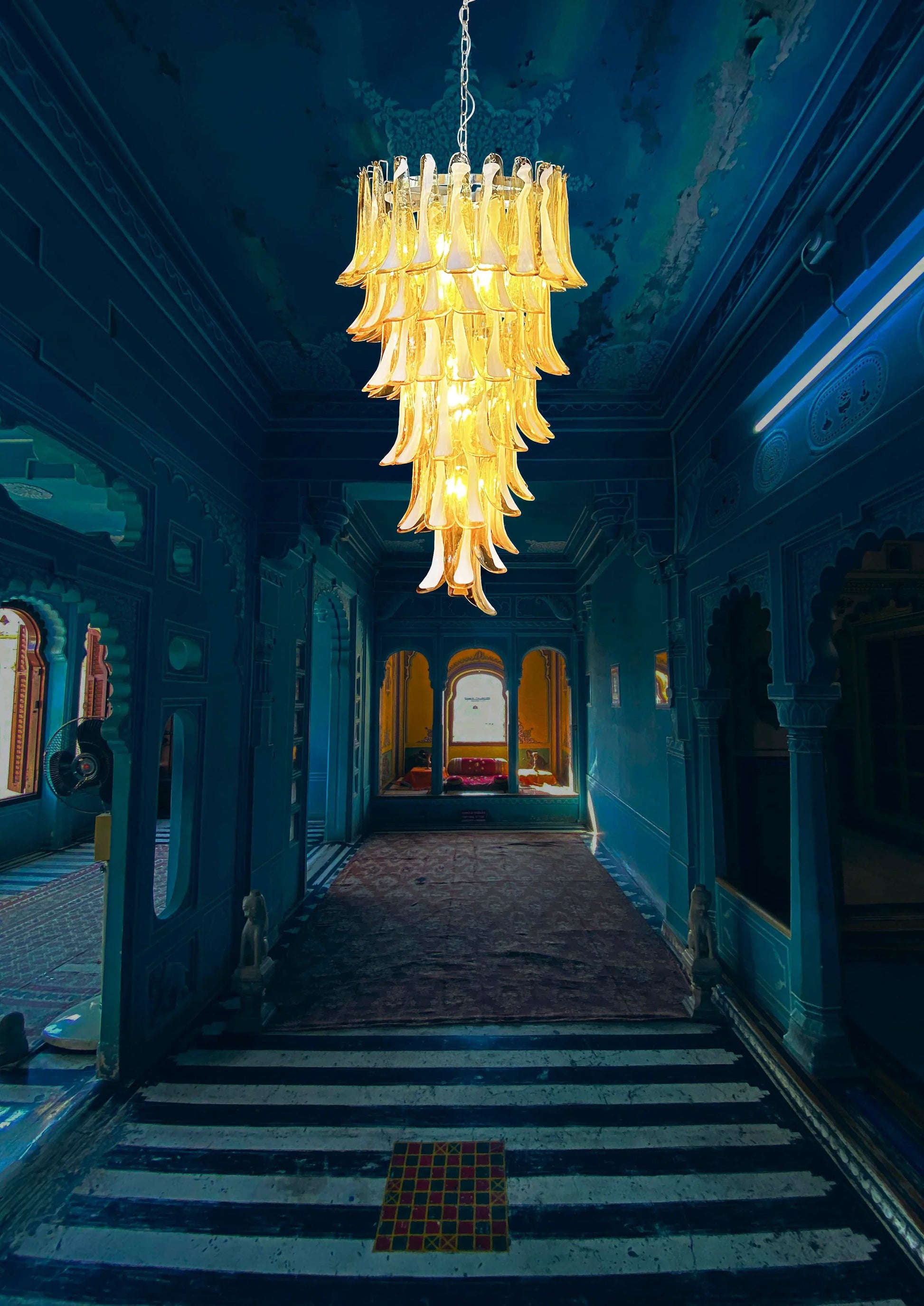 Transform your living space with the enchanting Beautiful Murano Amber Petals Spiral Chandelier, a stunning piece that combines artistic elegance with modern sophistication. Each petal is meticulously handcrafted, ensuring unique beauty and exceptional quality. Exquisite chandelier features Amber glass petals arranged in a captivating spiral design, creating a breathtaking focal point in any room. Add this stunning piece to your space and enjoy the ambiance of refined luxury.