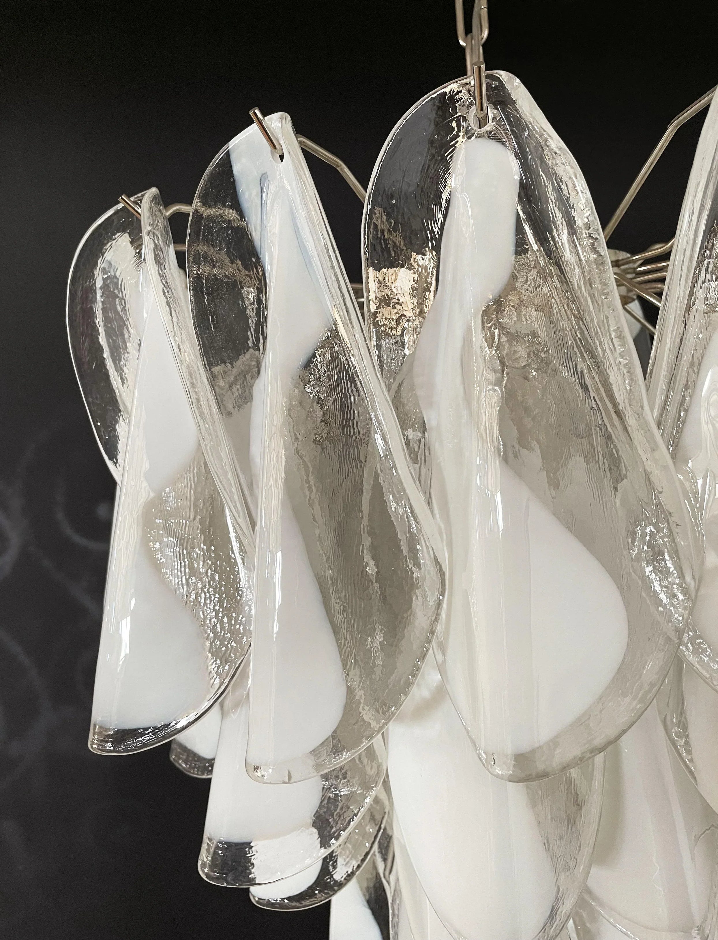 Vintage Murano Rondini Glass Chandelier, Indulge in the timeless elegance and craftsmanship. Featuring handblown glass elements, this fixture is a work of art that illuminates any space with its clear glass and stunning white center. Elevate your décor with this exquisite piece.