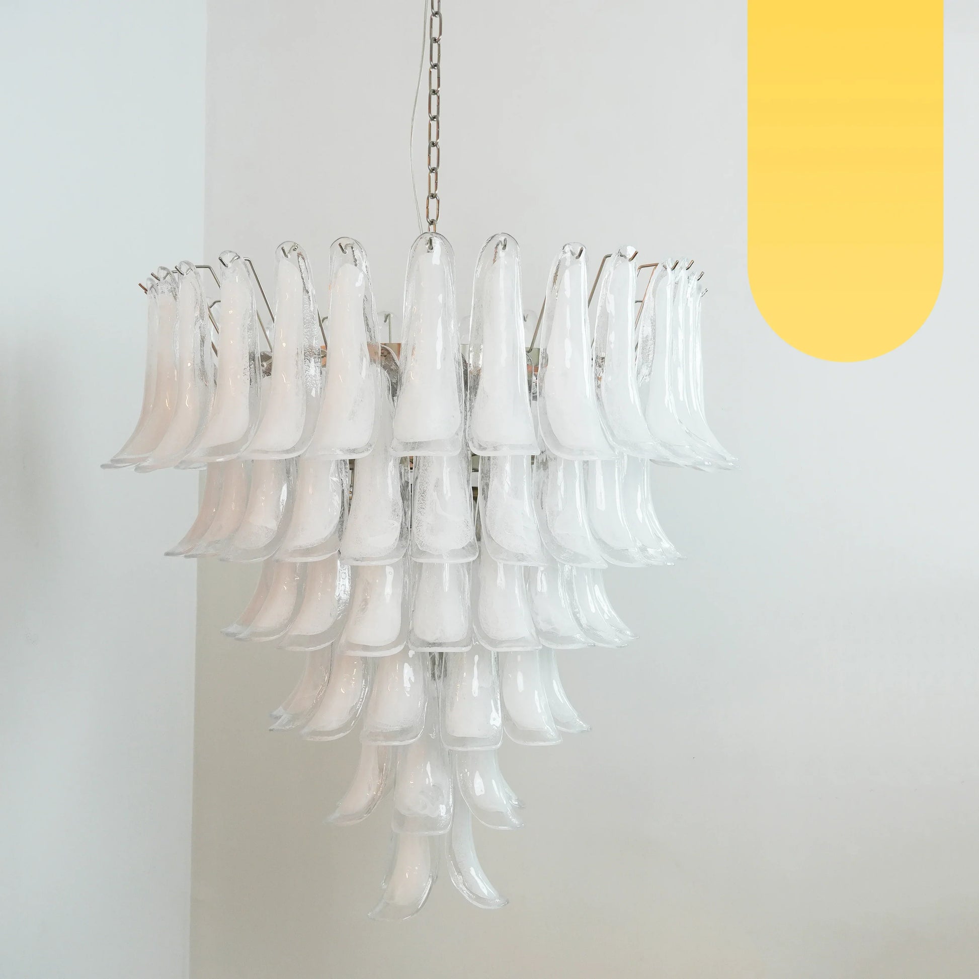 Vintage Murano Transparent Glass Petals Chandelier, Add a touch of vintage elegance to your home. Featuring beautifully crafted Transparent glass petals, this stunning chandelier creates a captivating and sophisticated centerpiece that enhances any room's decor. Provides a striking visual impact with its unique design and vibrant color.  Add a touch of elegance and charm to any space.