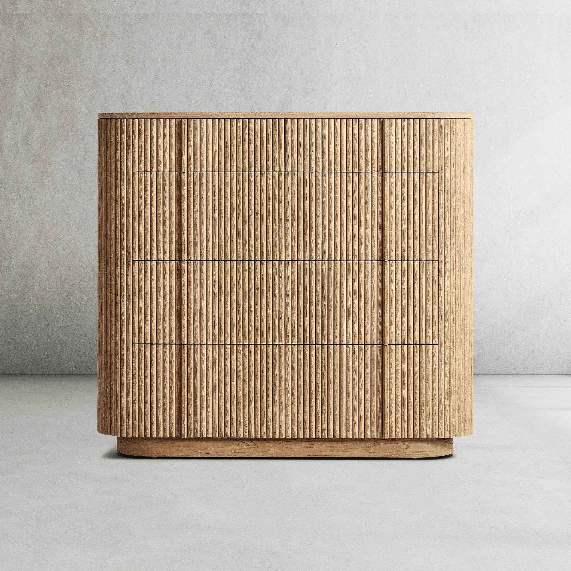- Vertical surfaces boast solid oak reeding, adding depth and texture to the piece.