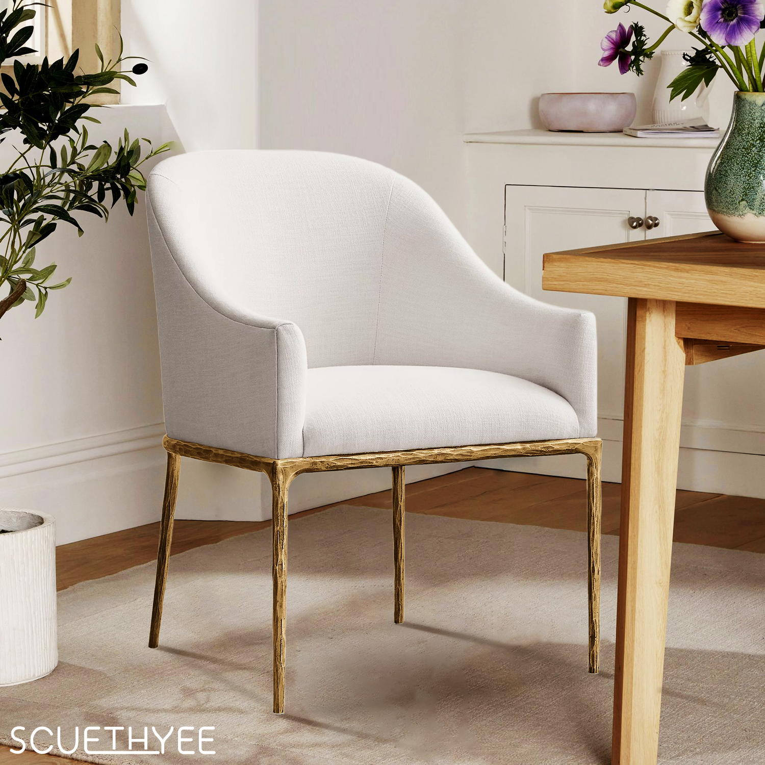 Thaddeus White Pure Wood Handrail Chair