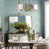 Shiny, handcrafted antiqued mirrored glass panels of varying sizes make up the unique shape of the Lailar chandelier. Finished in an antique bronze color, this stunning fixture shines with just the right amount of shine to add a soft, warm light to any room.