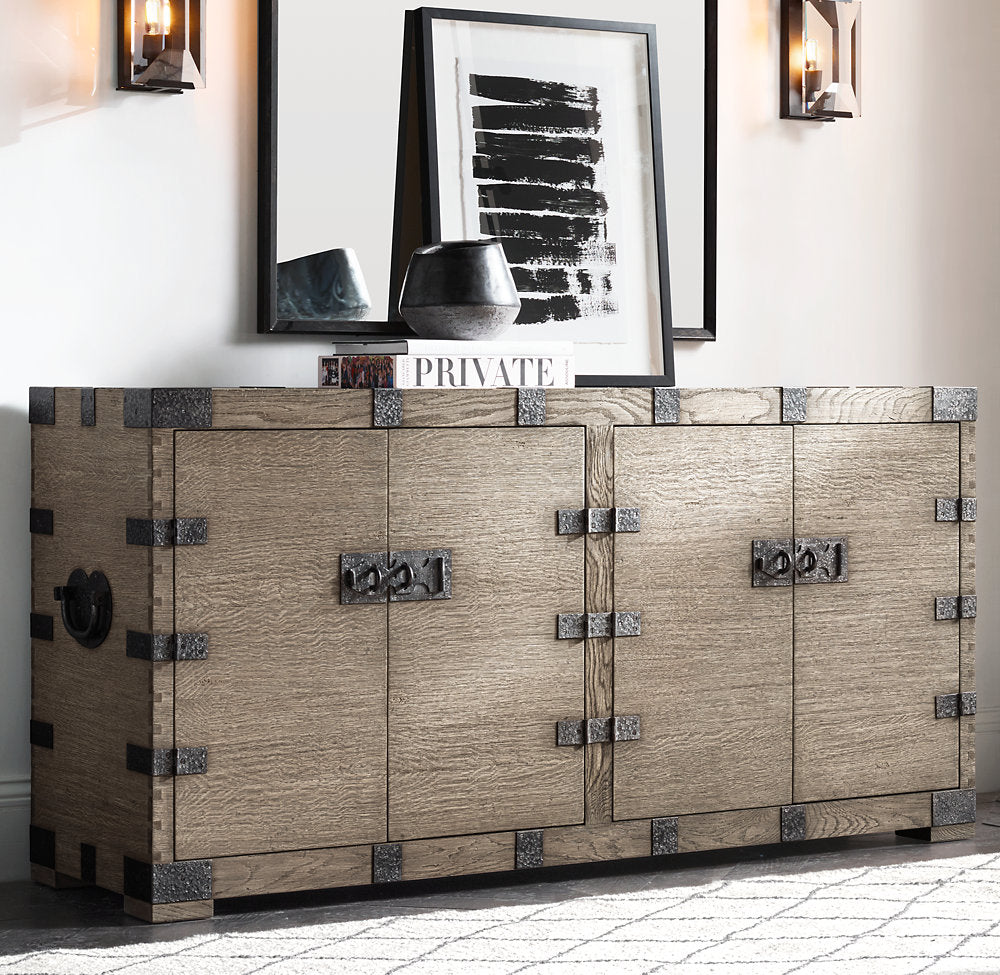 Thaddeus Metal Frame Rattan Long Side Cabinet