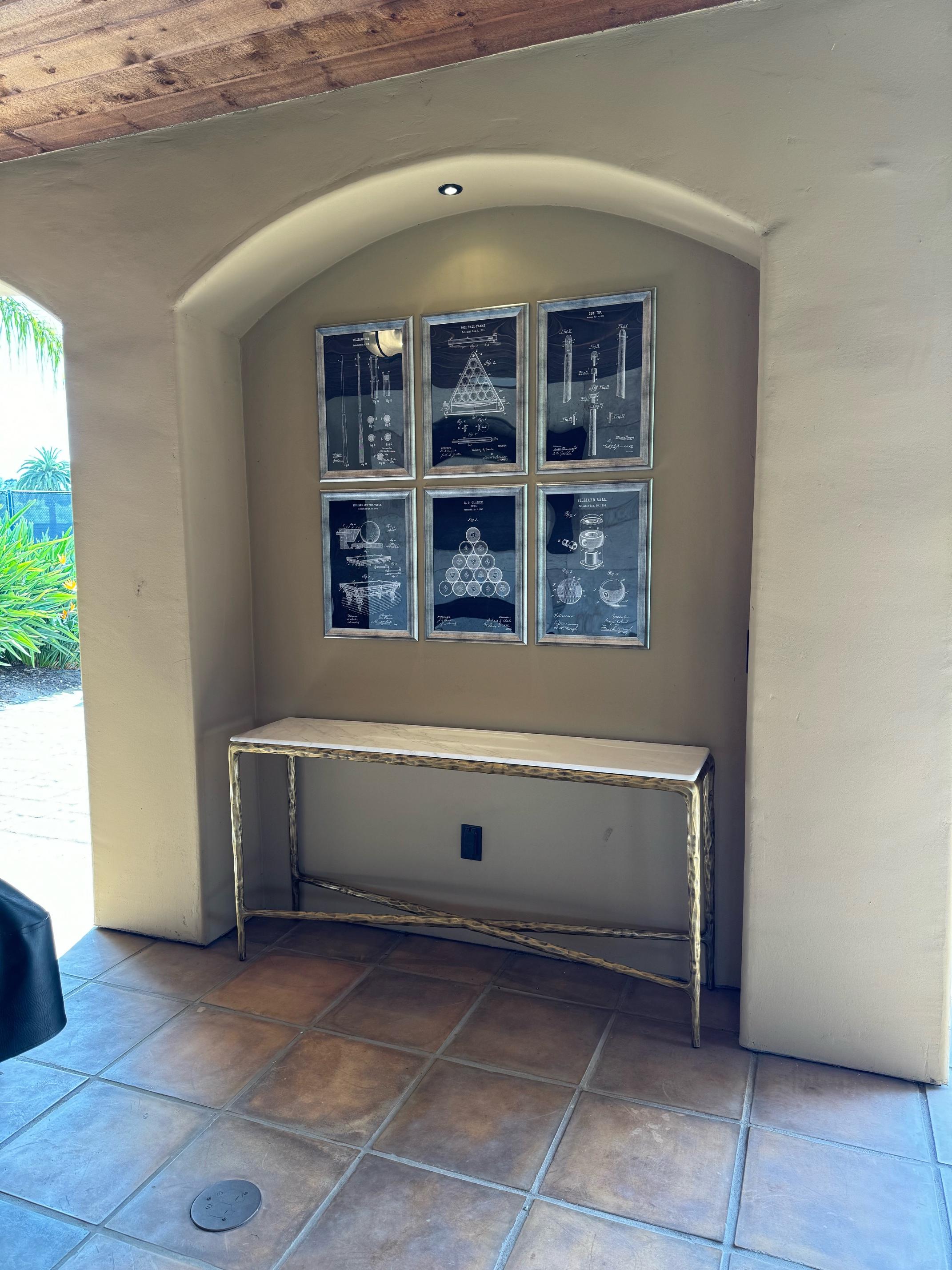 Our collection by the rustic sensibility of hand-forged metal with cool Italian marble. Employing an ancient fabrication process, artisans hand hammer the metal bars to reveal an alive, imperfect and organic texture. The pounded, tapered silhouettes are a rich counterpoint to the smooth, honed stone.