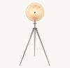 Inspired by early photographic and stage lighting, the Meridian transcends the utilitarian to become a sculptural statement. A stunning juxtaposition of alabaster and iron, the fixture's half domes of varying diameter rest above a tripod base with tapered supports. The stone forms meet along a shared axis, evoking complementary hemispheres.