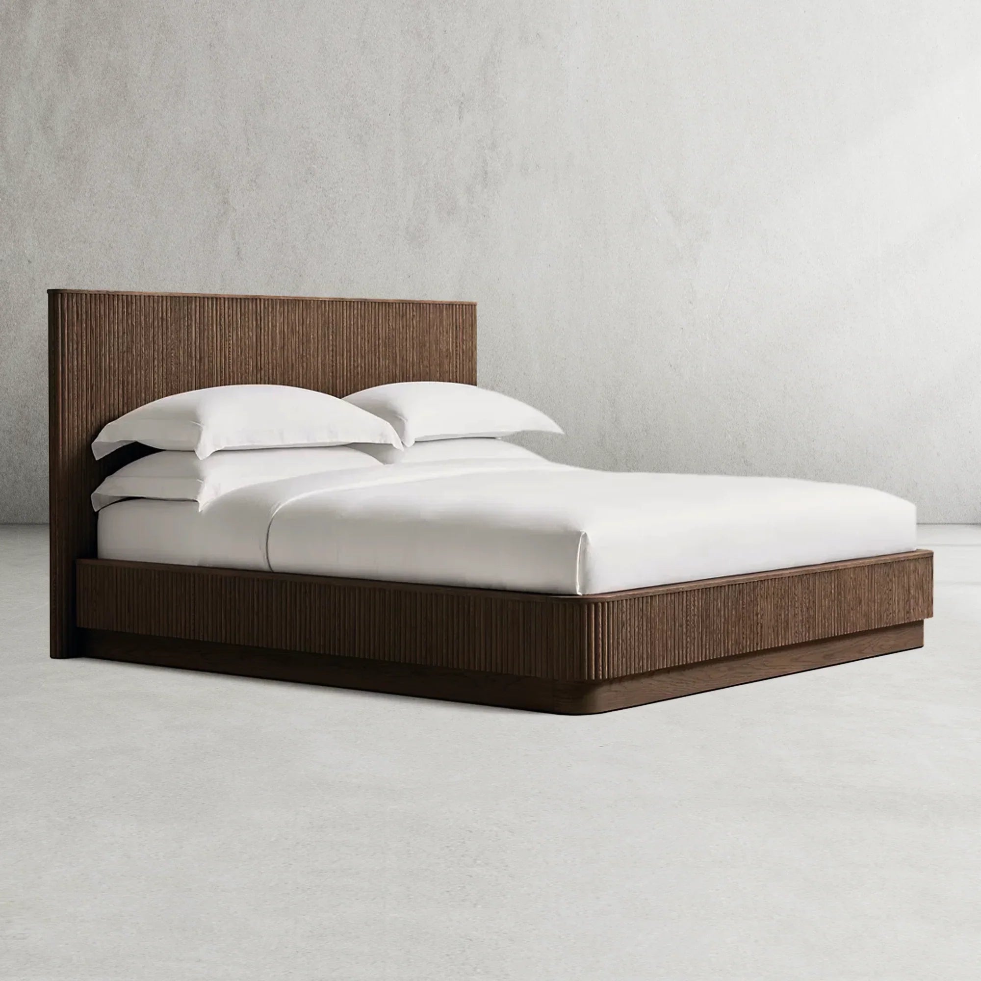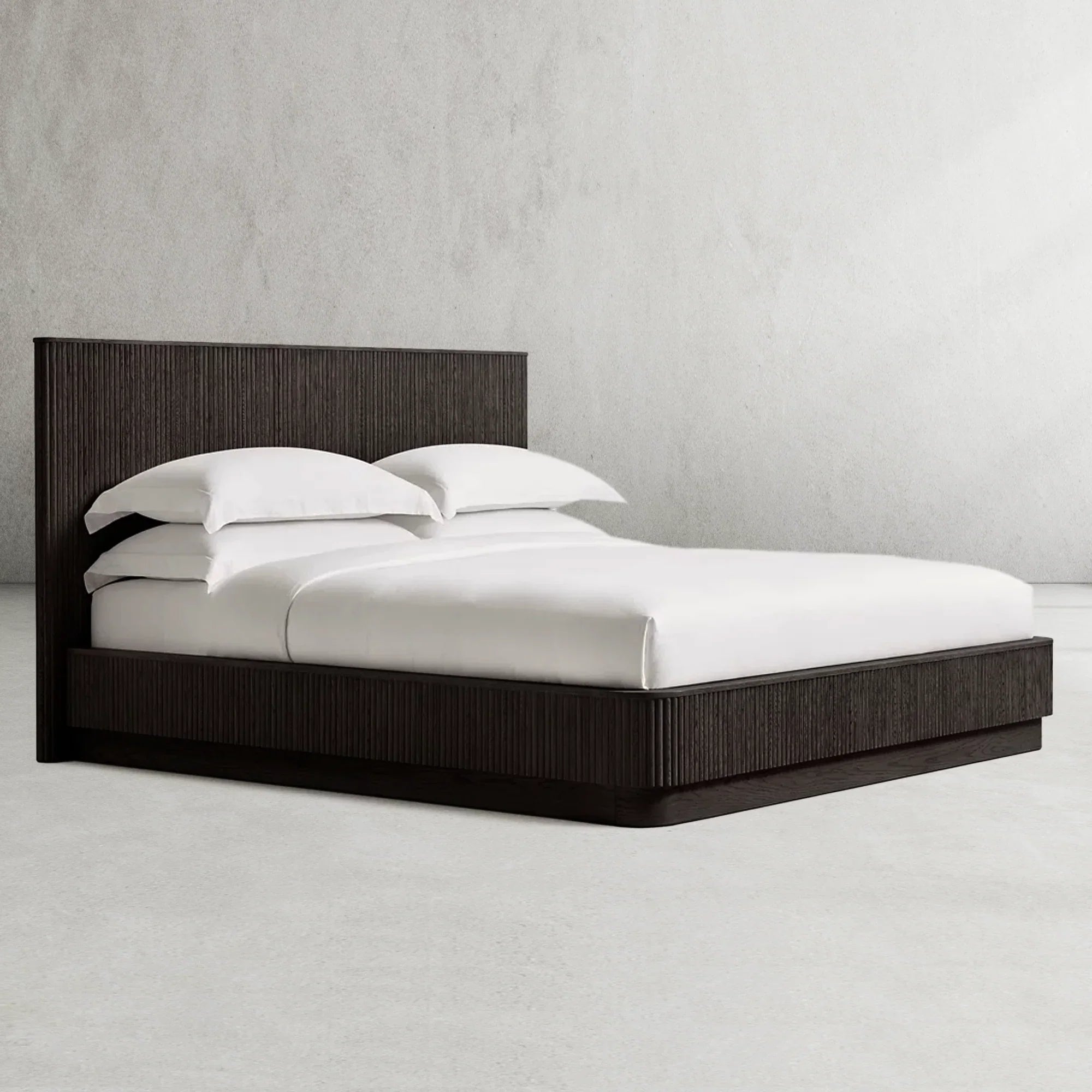 - Innovative cord cutout in the plinth base at the back of the headboard ensures tidy wire management, enhancing both functionality and aesthetics.