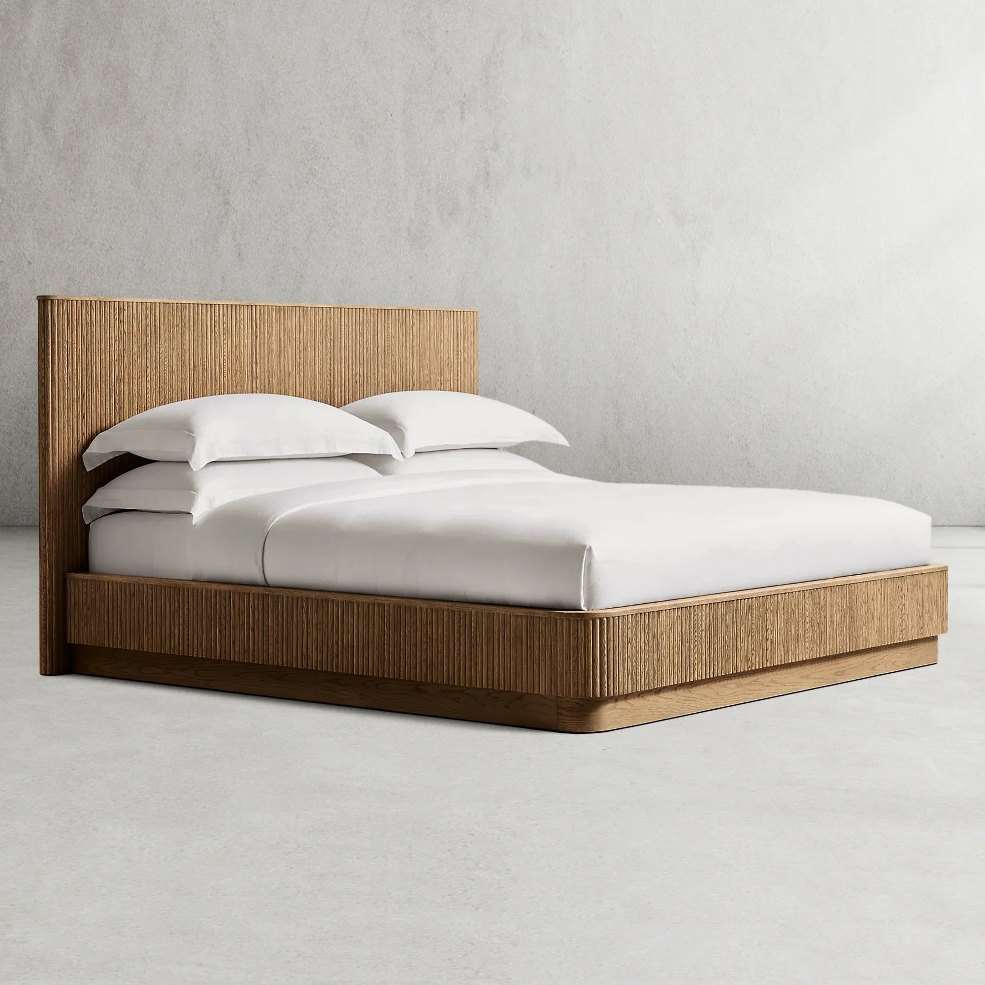- The celebrated designers Thomas Bina and Ronald Sasson have merged skill with artistic vision, featuring fluid, radius corners that elegantly curve around the bed’s sides.