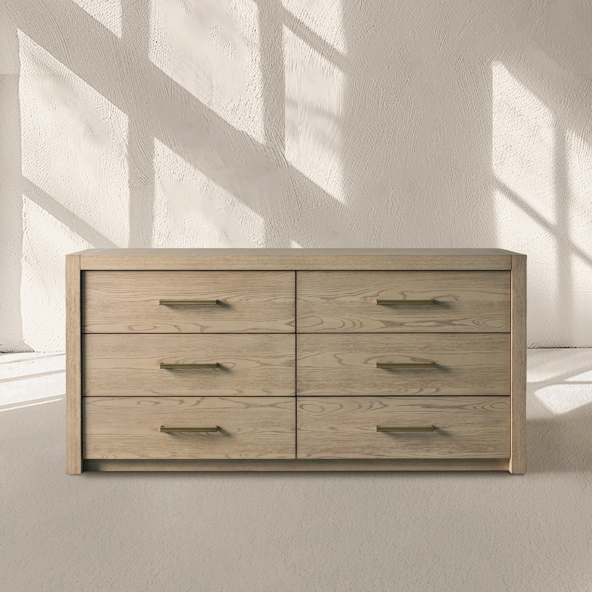 Thaddeus Metal Frame Rattan 6-Drawer Side Cabinet