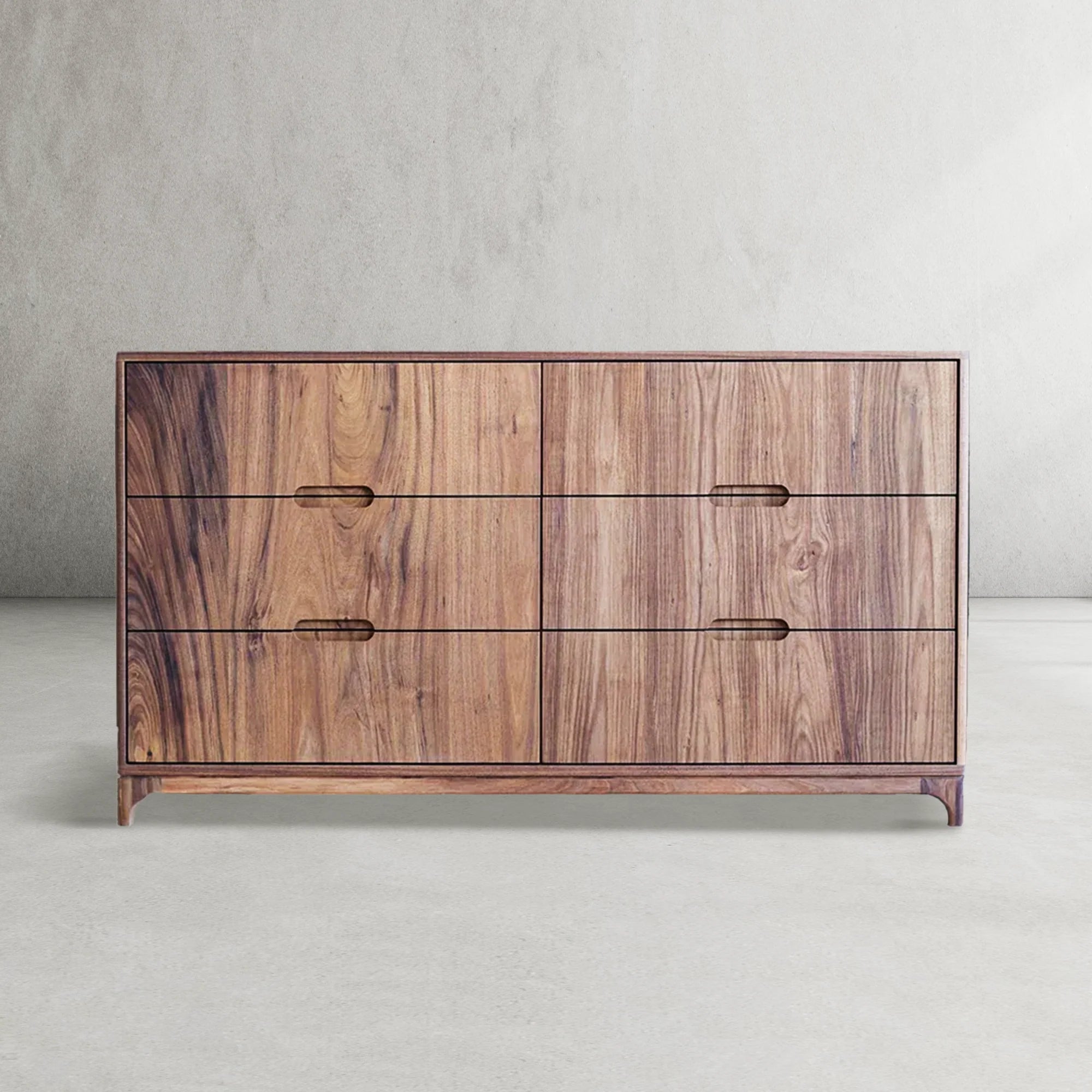 Experience the sophistication of the Paleroon Walnut Dresser, designed to enrich your home with its elegant and practical features. This piece blends the natural allure of American walnut with advanced storage solutions, making it an ideal addition to any dining room, living area, or entryway.