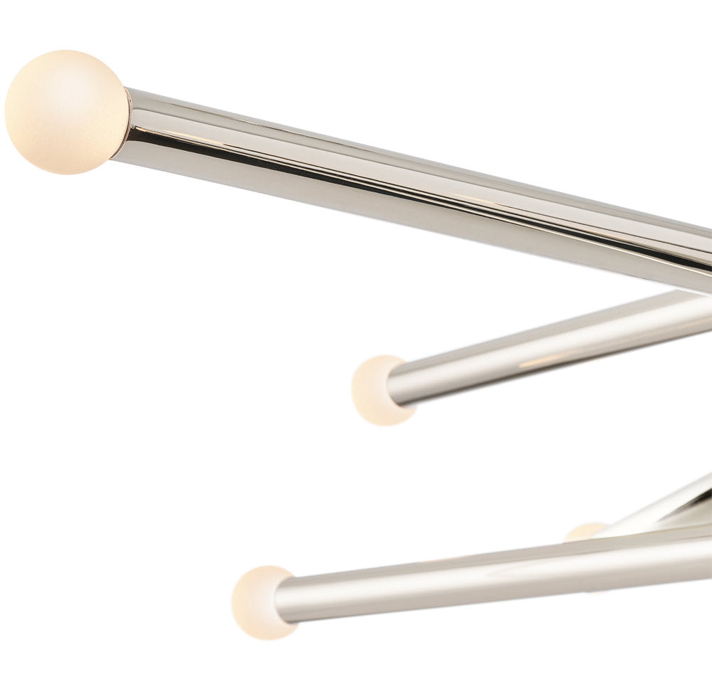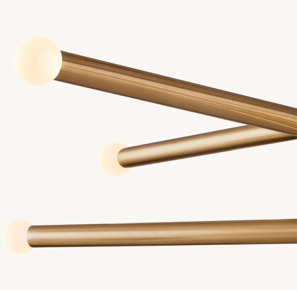 Inspired by minimalist midcentury Italian design, our contemporary interpretation of the chandelier offers reductionist form in a striking silhouette. Each end of Rousseau's slender arms bears an etched glass orb fitted with an integrated LED bulb. When lit, the fixture emits a warm, filtered glow.