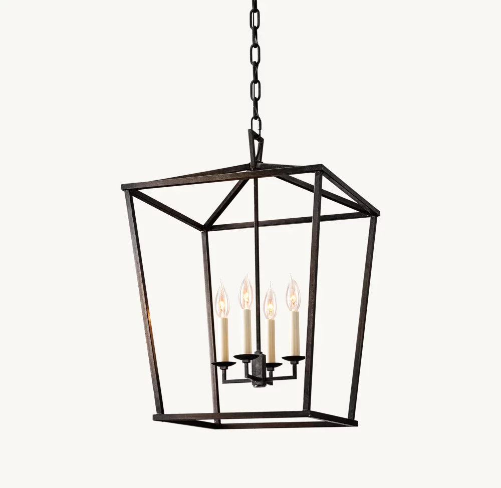 The forthright design of our lantern-style fixture reflects the functional architecture of 19th-century lighting. We've omitted the glass panes that once shielded the candle's flame to allow unobstructed illumination.