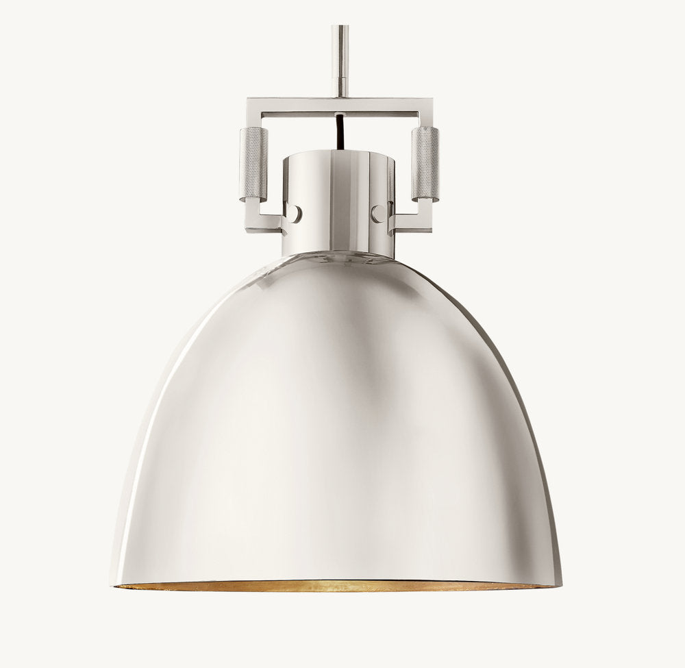 In an elevated spin on utility, our Machinist Pendant by Jonathan Browning is inspired by the functional fixtures used in workshops and factories throughout the mid 20th century. Bridging the line between heritage and modernity, the classic domed cloche shade is held in place by a sleek geometric metal yoke, whose precision craftsmanship is defined by crisp angles, diamond knurling and exposed bolts.