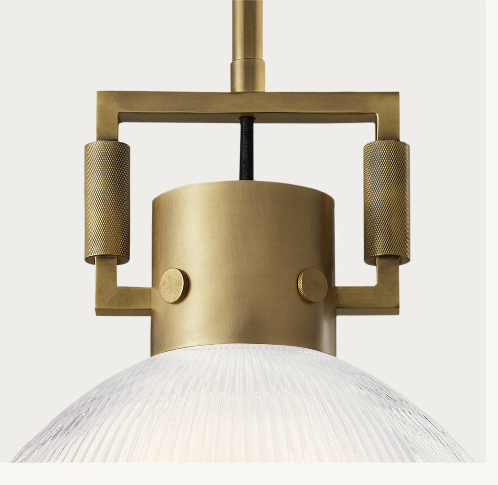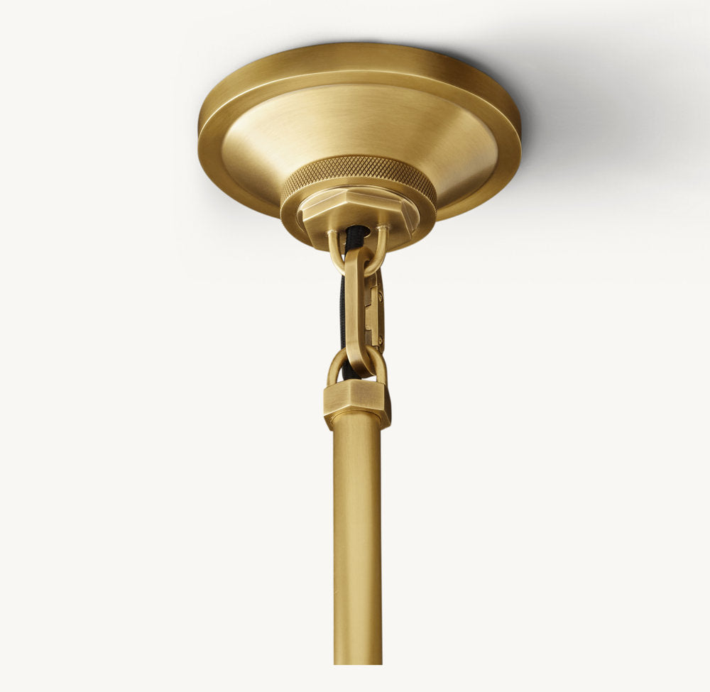 In an elevated spin on utility, our Machinist Pendant by Jonathan Browning is inspired by the functional fixtures used in workshops and factories throughout the mid 20th century. Bridging the line between heritage and modernity, the classic domed cloche shade is held in place by a sleek geometric metal yoke, whose precision craftsmanship is defined by crisp angles, diamond knurling and exposed bolts.