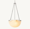 Half-dome shades of richly figured alabaster lend a refined sensibility to our collection, inspired by midcentury Italian design. A juxtaposition of geometric forms and luxe materials, the pendant's demisphere shade contrasts with slender rods, the natural alabaster with industrial metal. Light delivers a warm glow as it passes through the translucent stone, supported by its restrained armature.