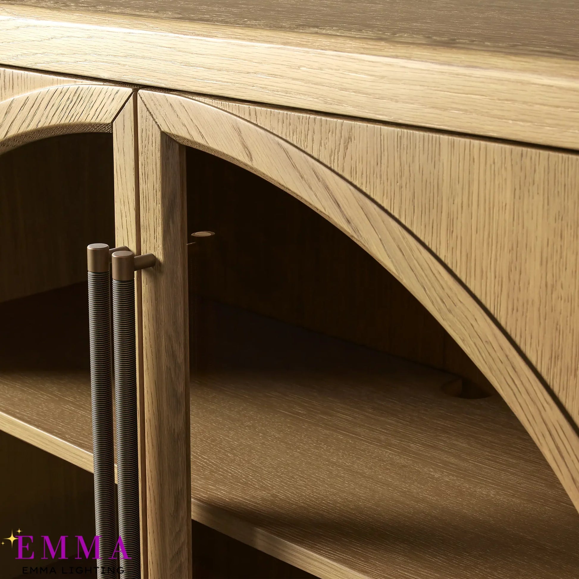 Where soft curves blend seamlessly with the natural beauty of oak, the artisan-crafted Hattie Collection stands ready. With spacious shelves, it offers ample room to showcase your cherished treasures and daily essentials.