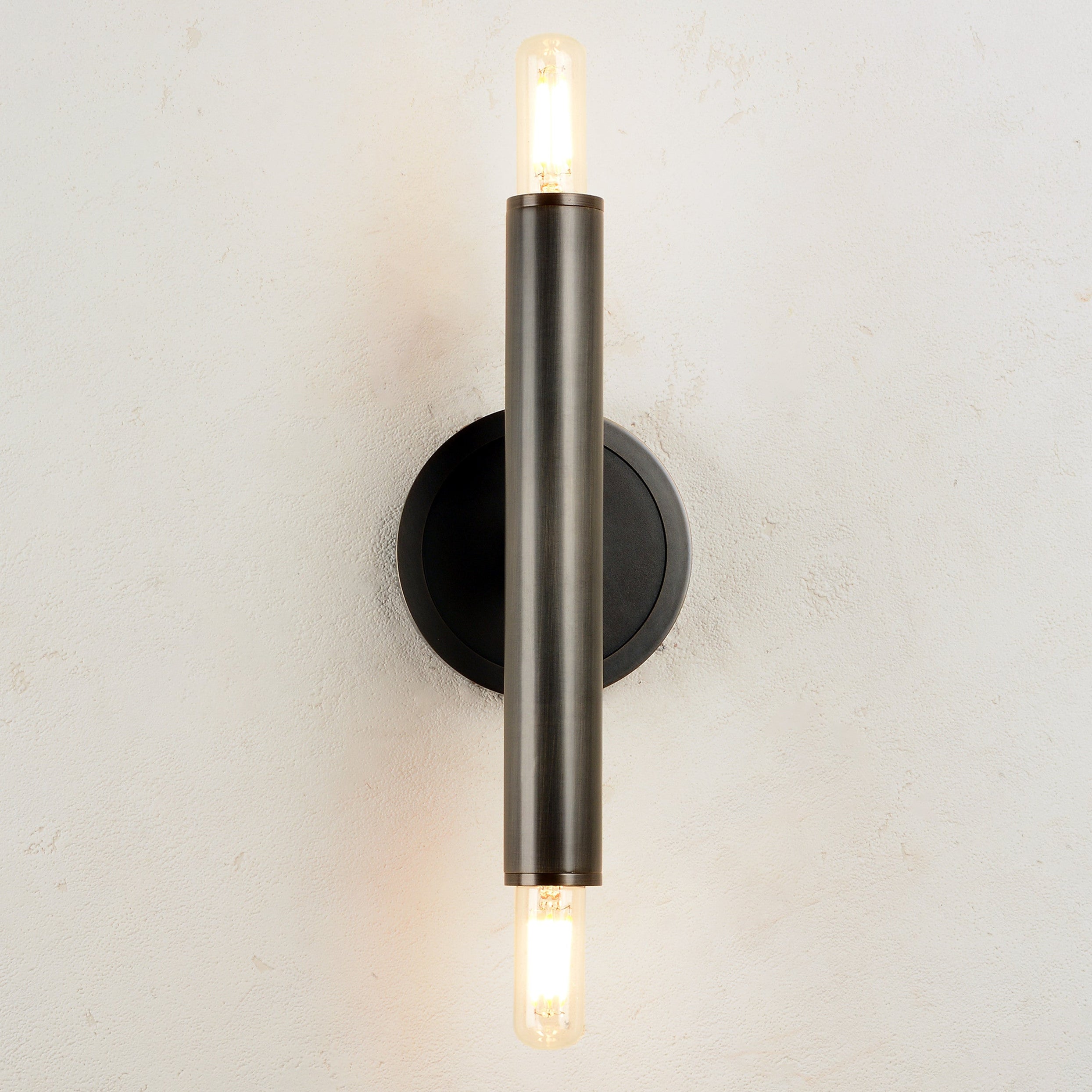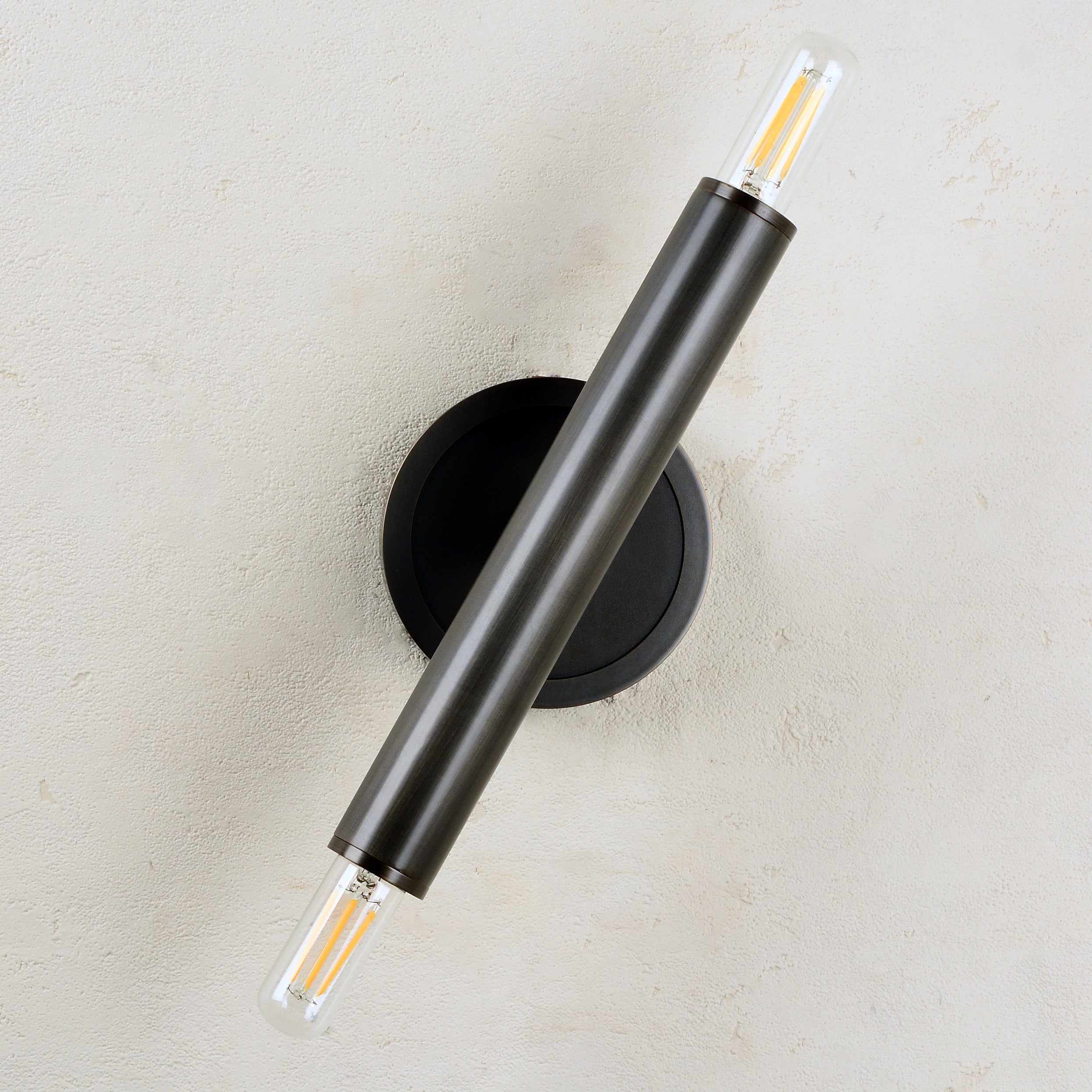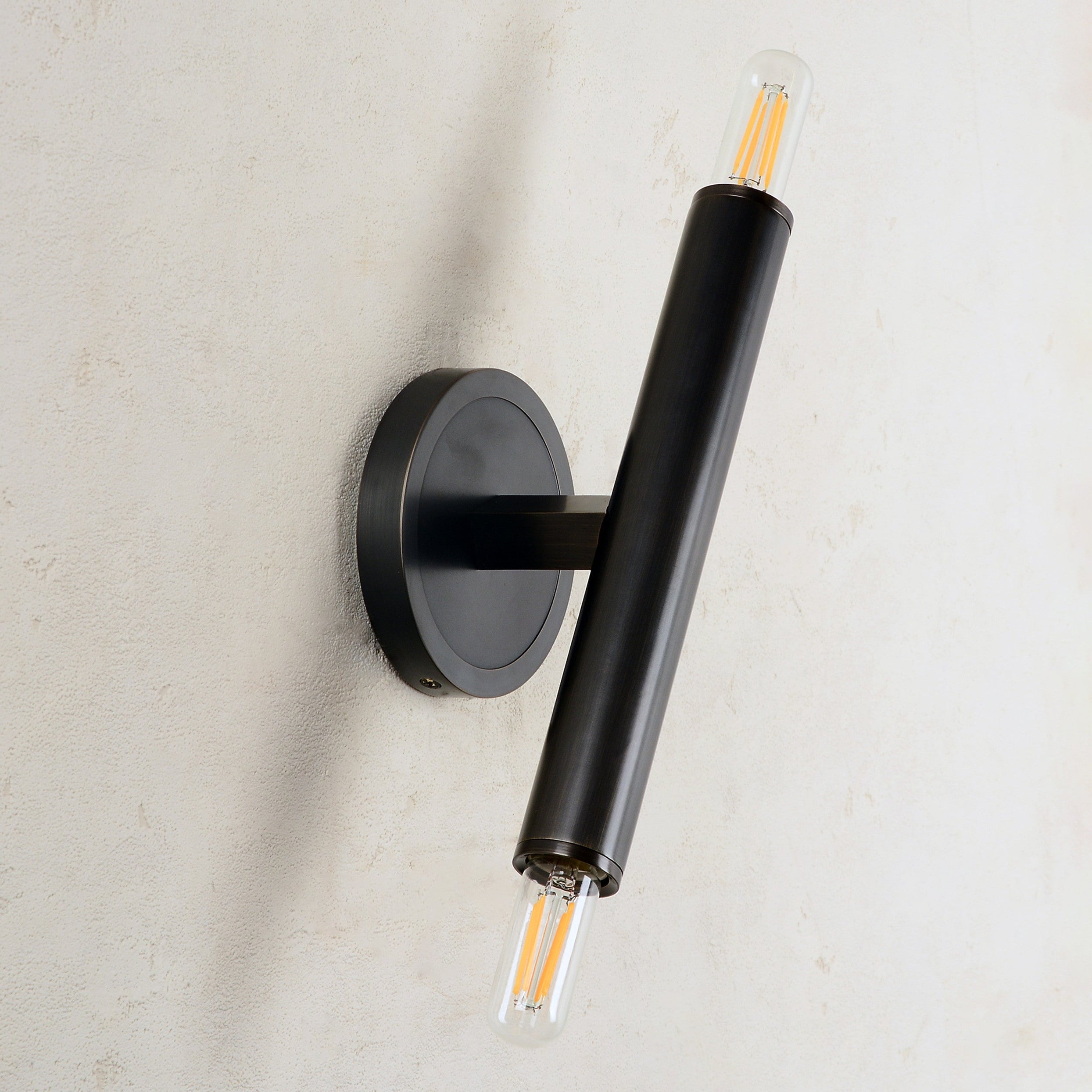 There are only two bulbs on the both side of the rod. This is the characteristic of this light. Also it is easy install. This sconce can be oriented vertically, horizontally or angled.