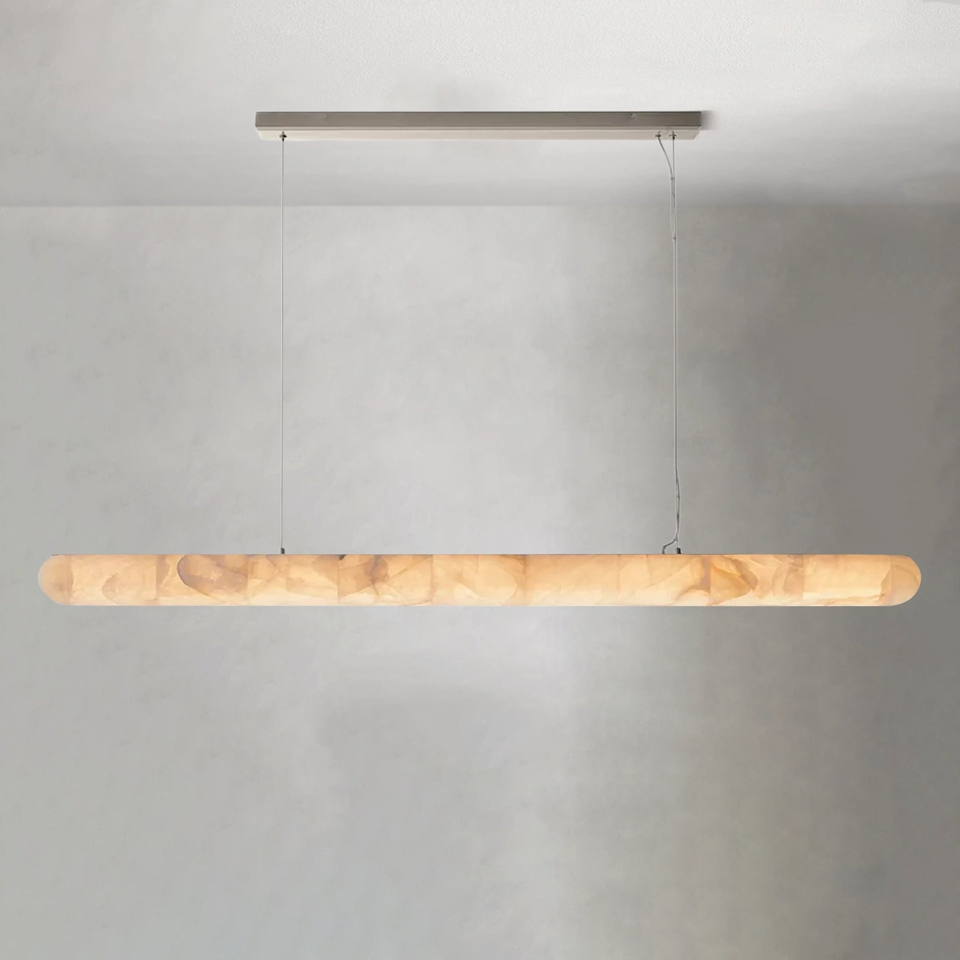 HAND-CARVED ALABASTER CYLINDER PENDANT 14"