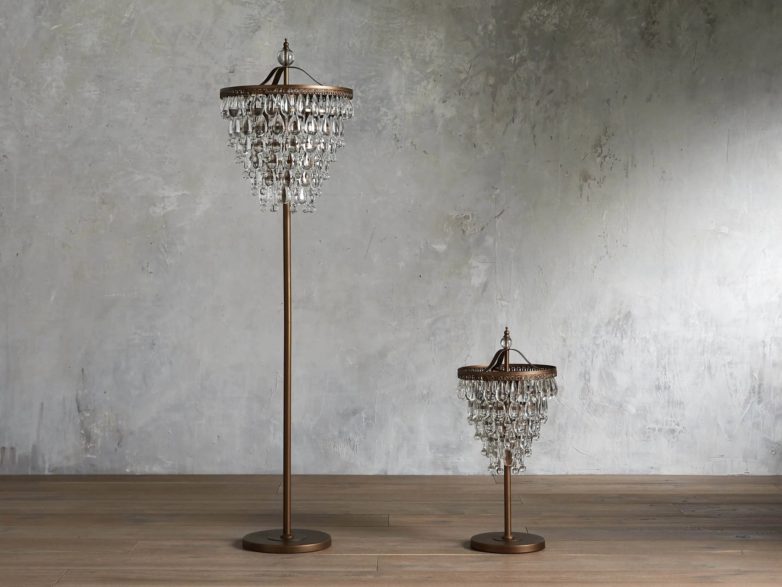 Large crystal droplets catch the light, enhancing the shimmer of our stunning Anabella Collection. Its timeless elegance lends a special atmosphere to any room. Available in a chandelier, floor lamp and table lamp.