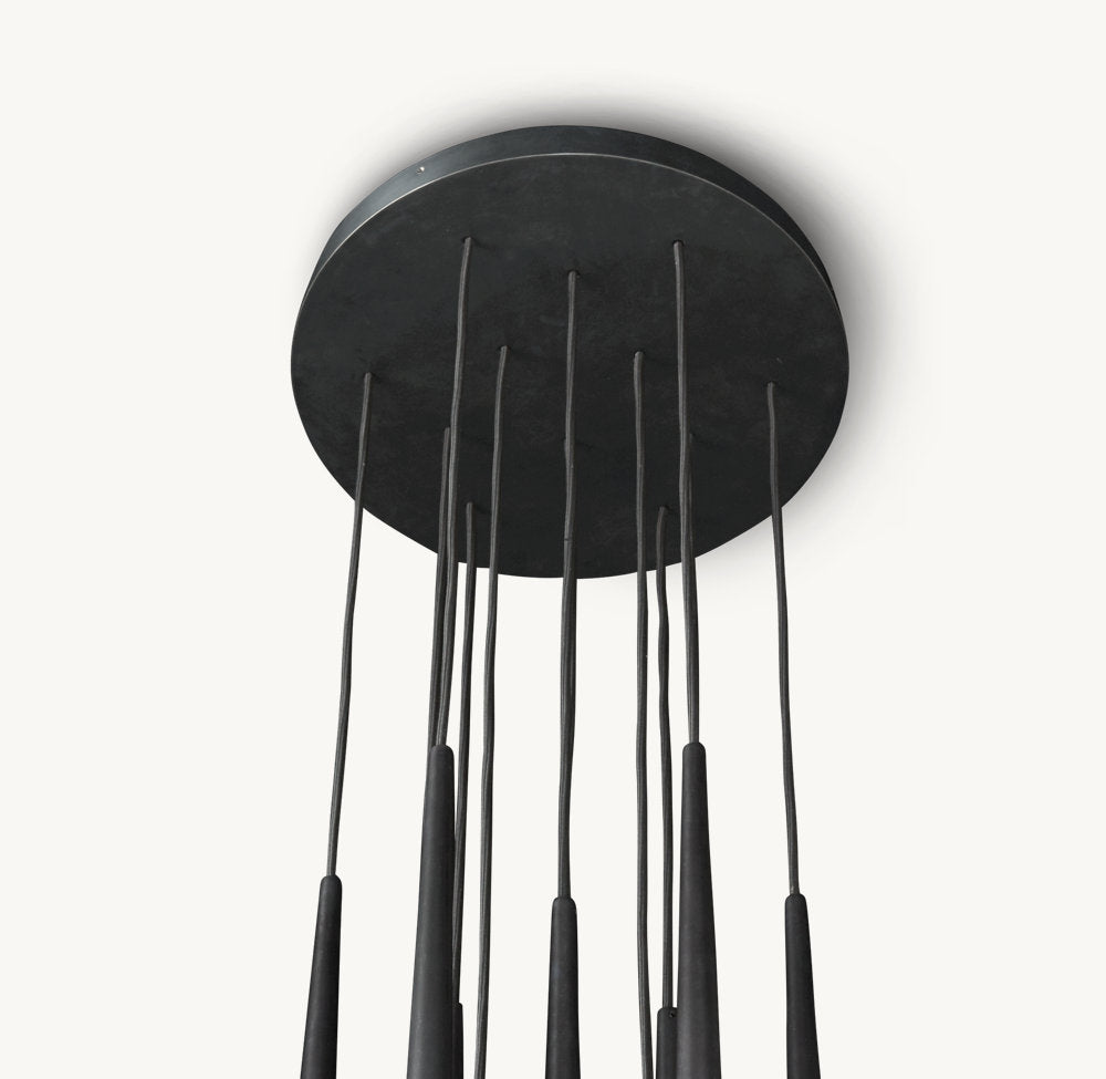 - 12 lights suspended from slender black cords
