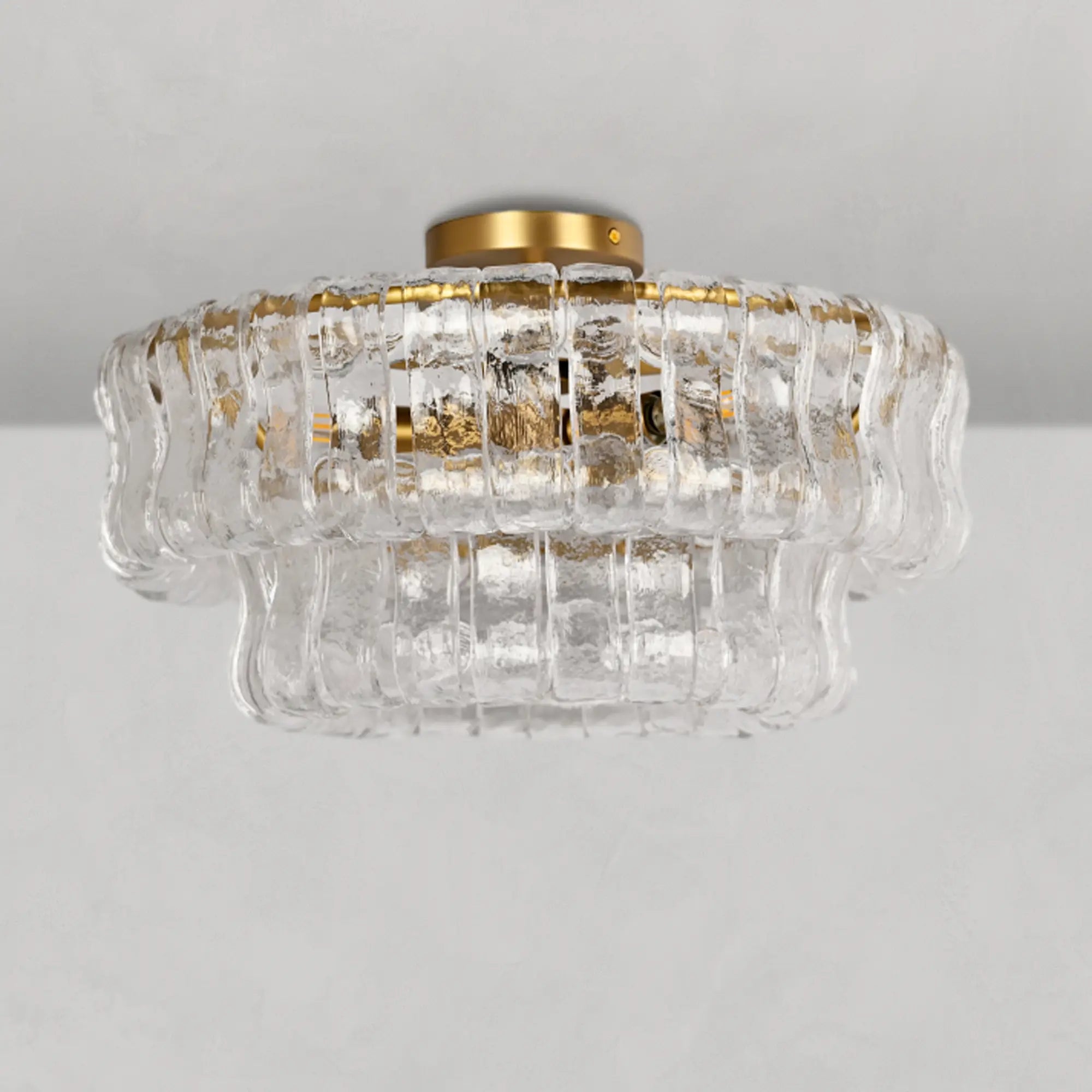 Our Ghiaccio lighting collection draws inspiration from Italy's famous decorative glass, artfully diffusing light through curved, textured glass sheets.Ghiaccio features an electroplated brass finish that brings an elegant lighting effect to any room.