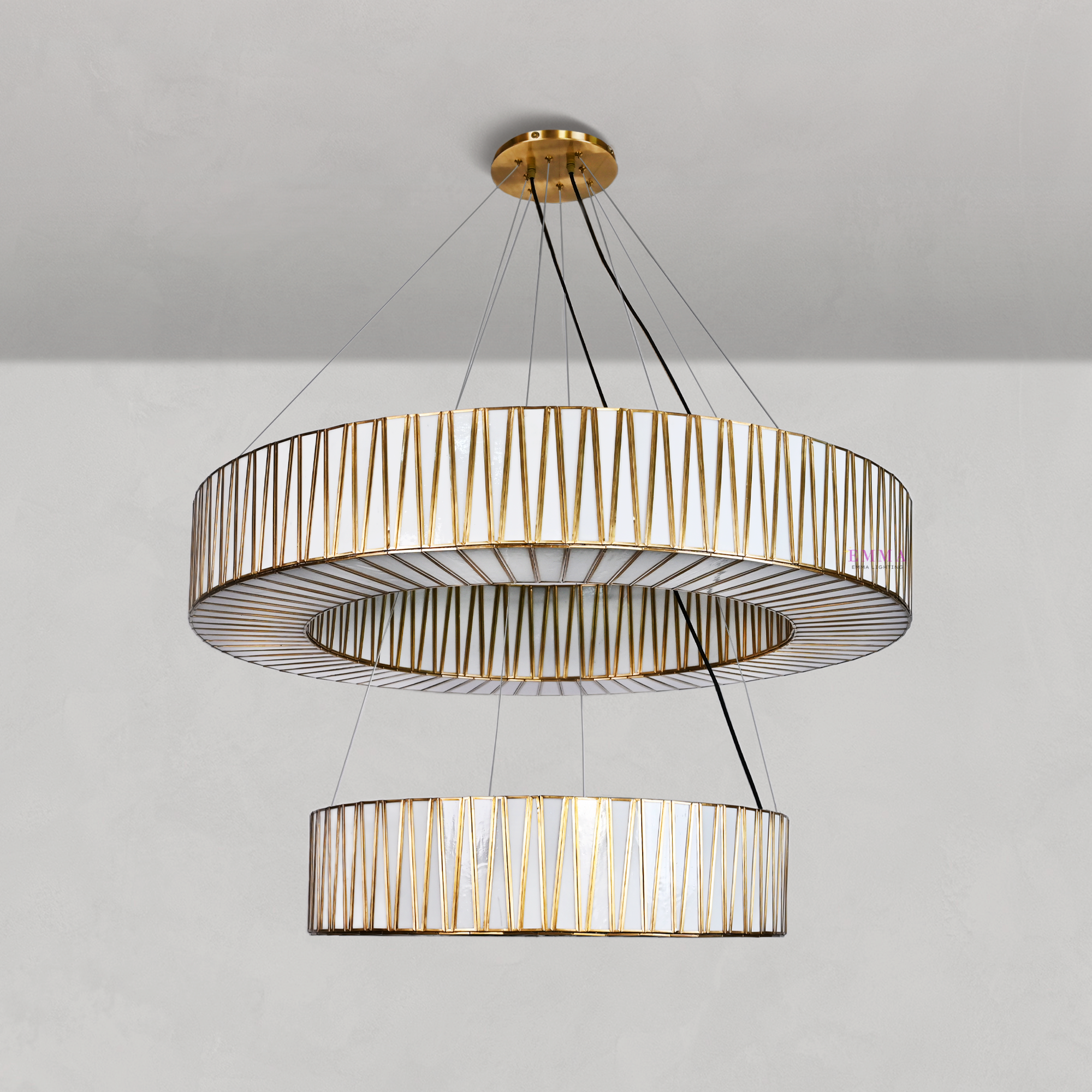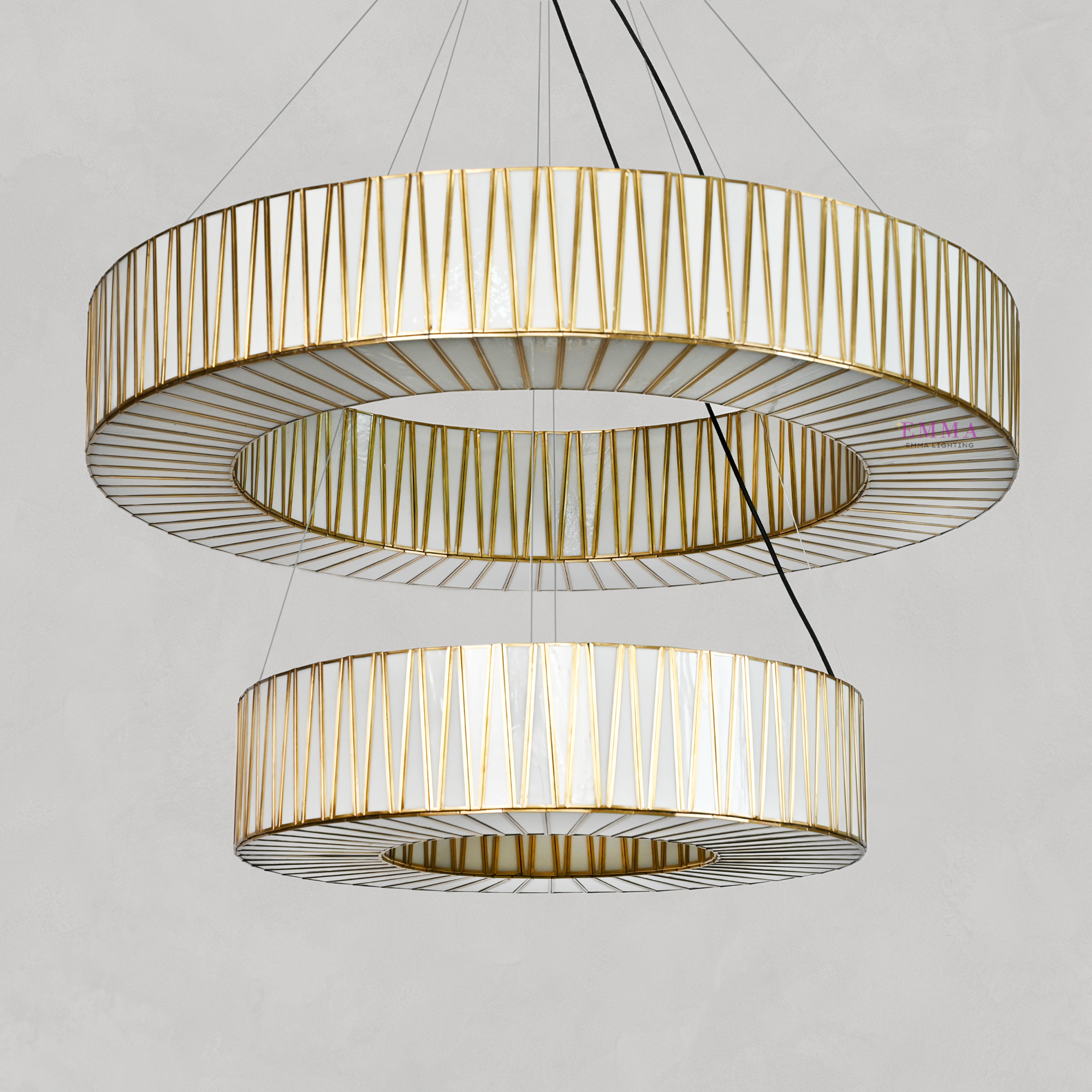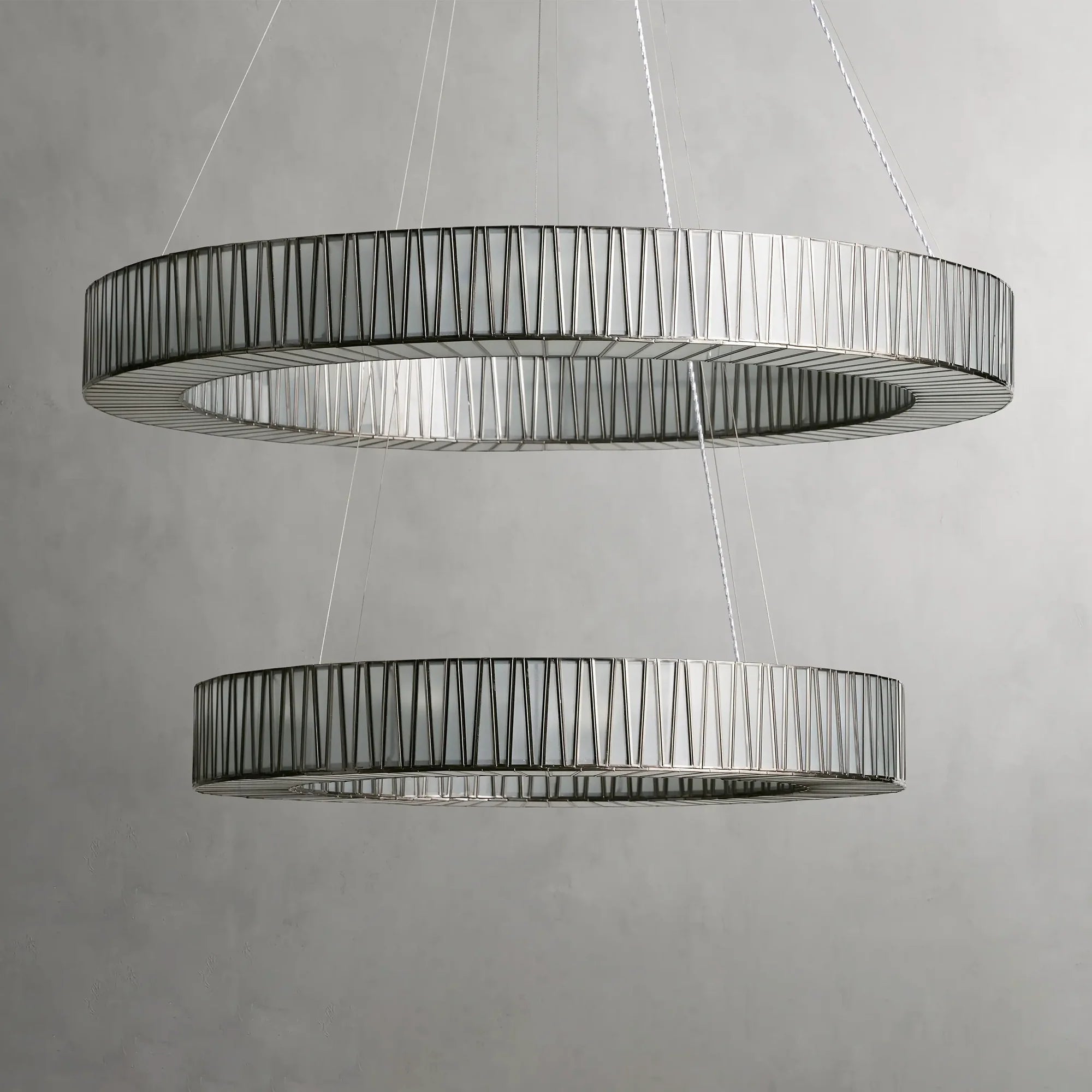 Art Fabric Lamp Shade Rhode 2-Tier Round Chandelier 48"