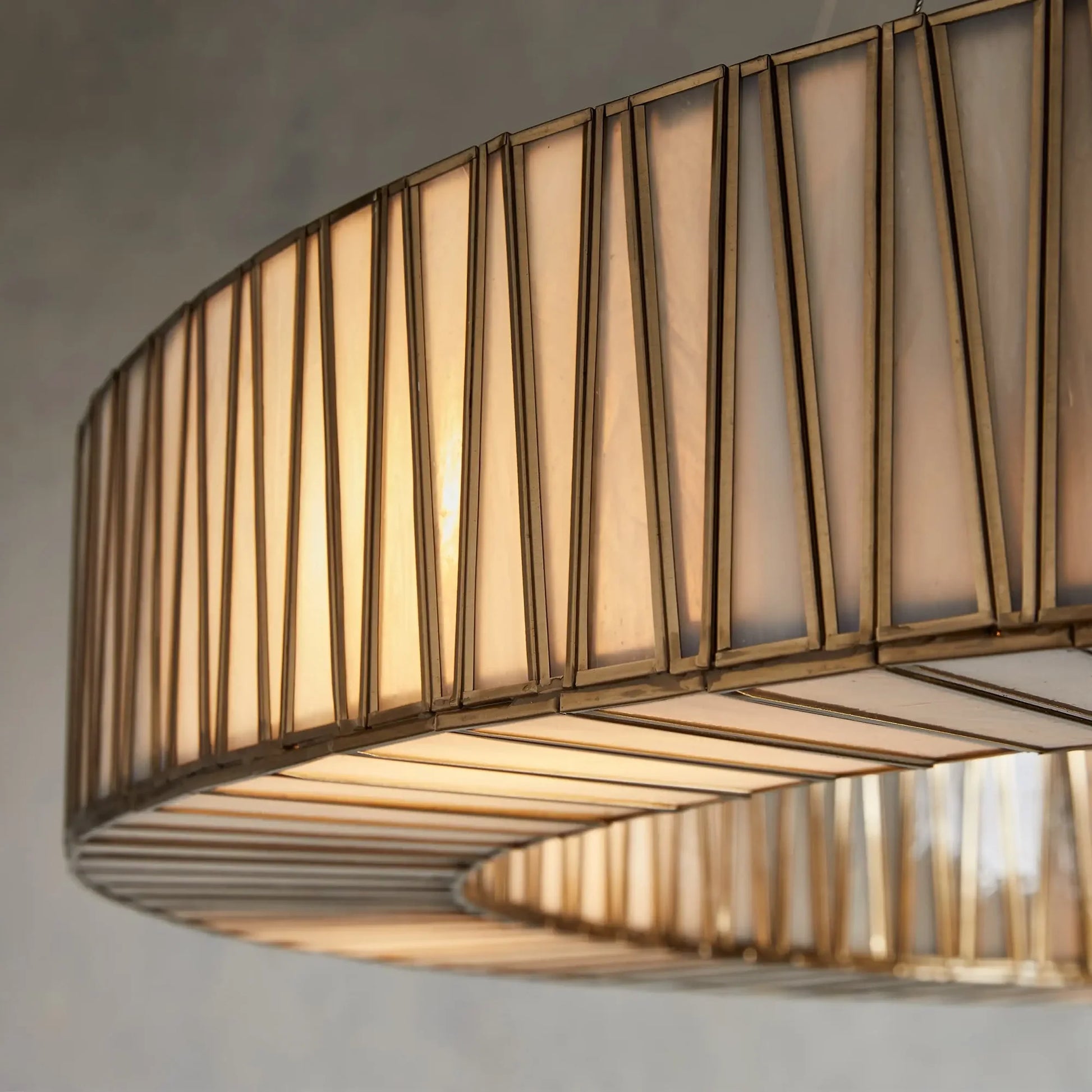HAND-CARVED ALABASTER CYLINDER PENDANT 14"
