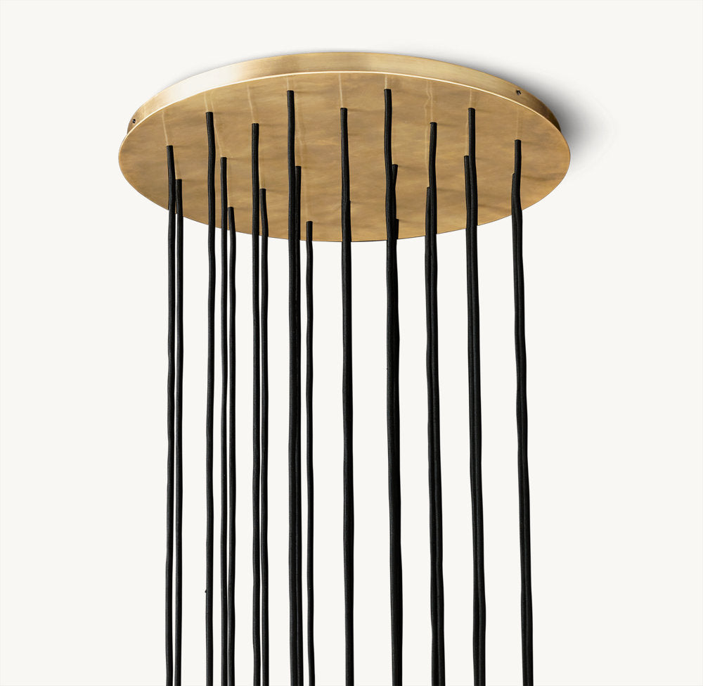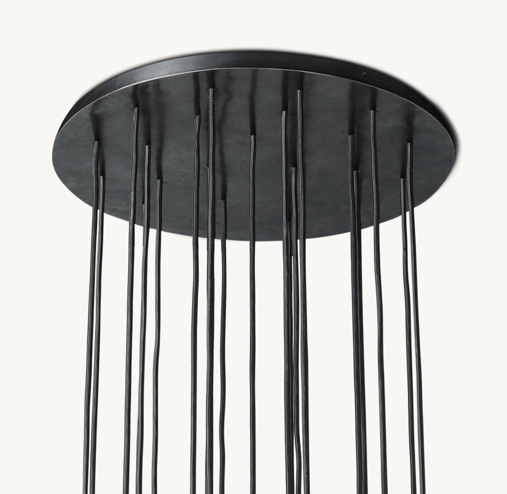 - Hangs from a black fabric cord; cord may be shortened at time of installation