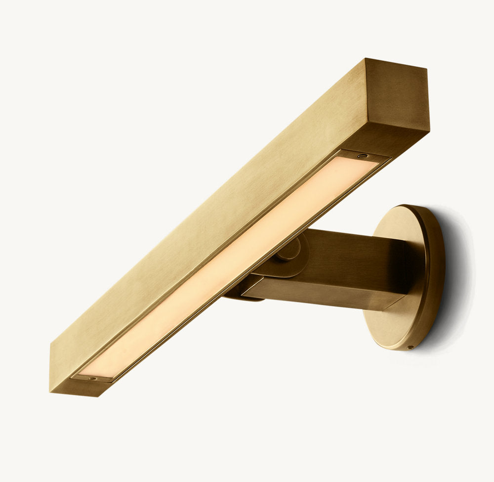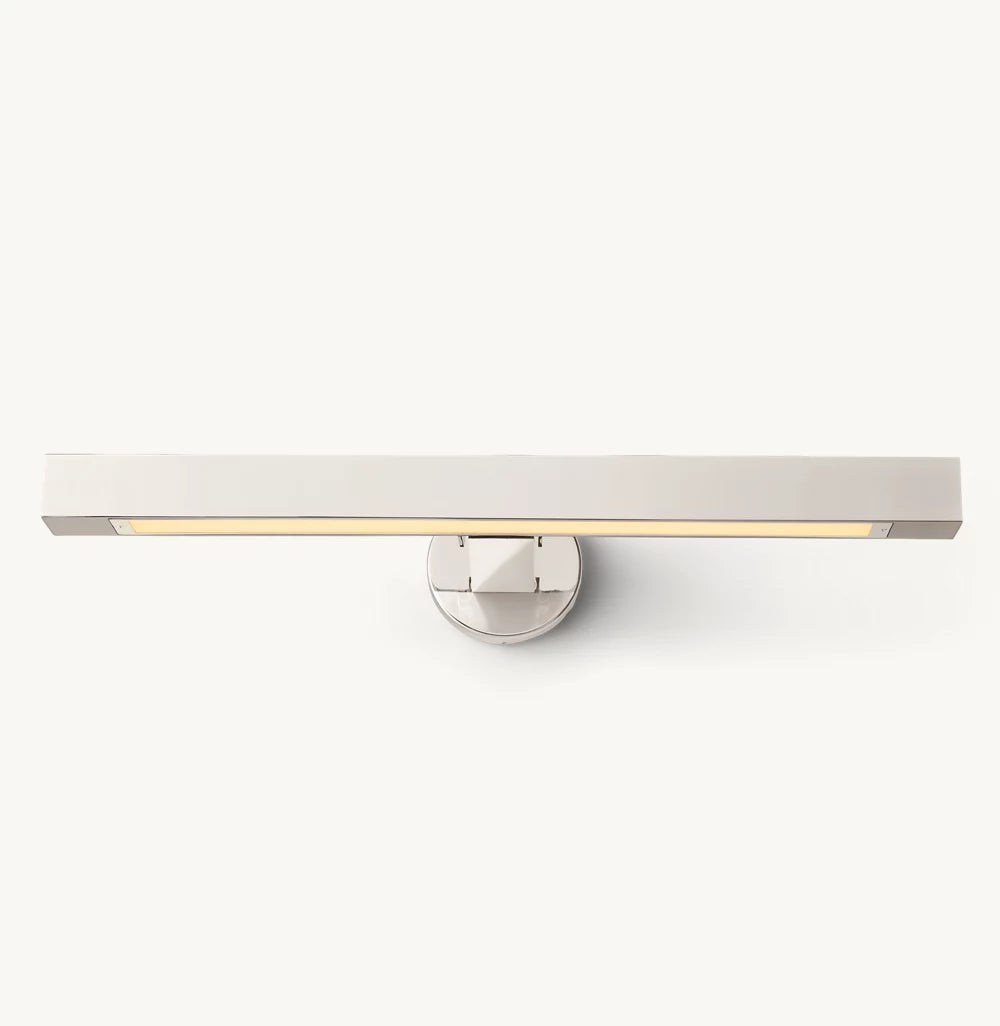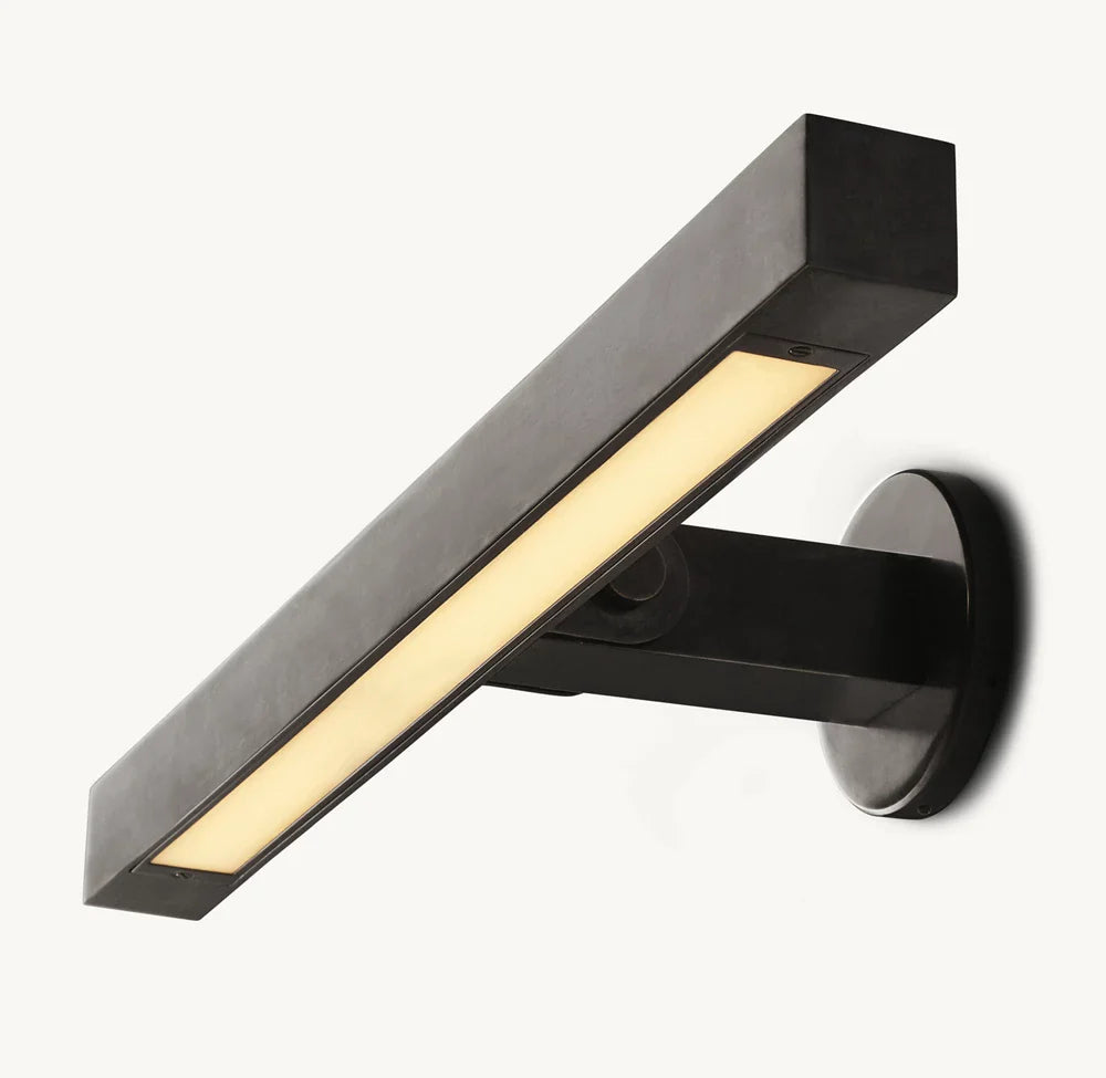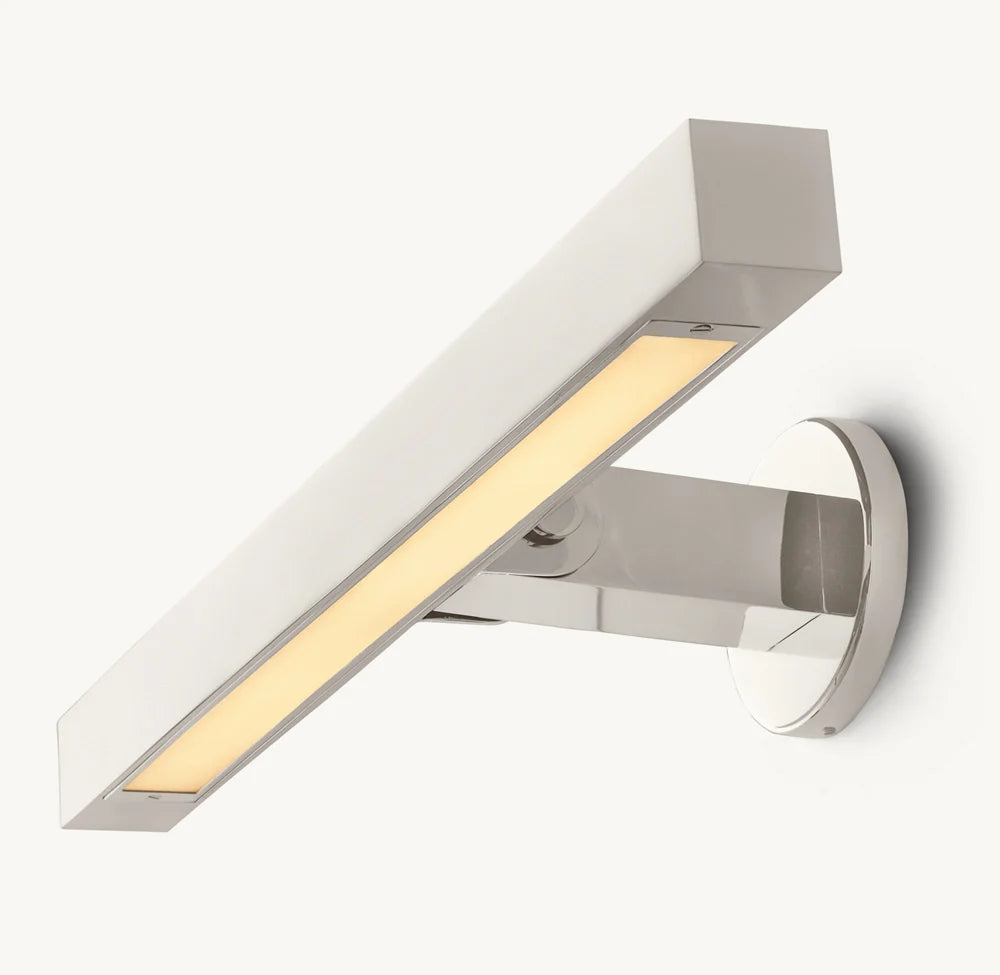 The form of a Beaux Arts candleholder is reinterpreted with clean lines and sharp angles in this fixture from renowned lighting designer Jonathan Browning. The integrated LED panel provides a focused swath of light.