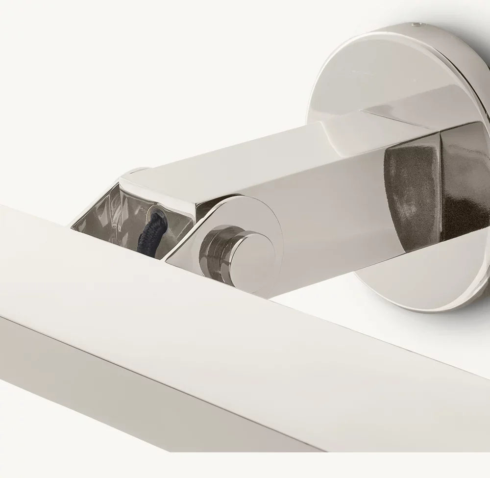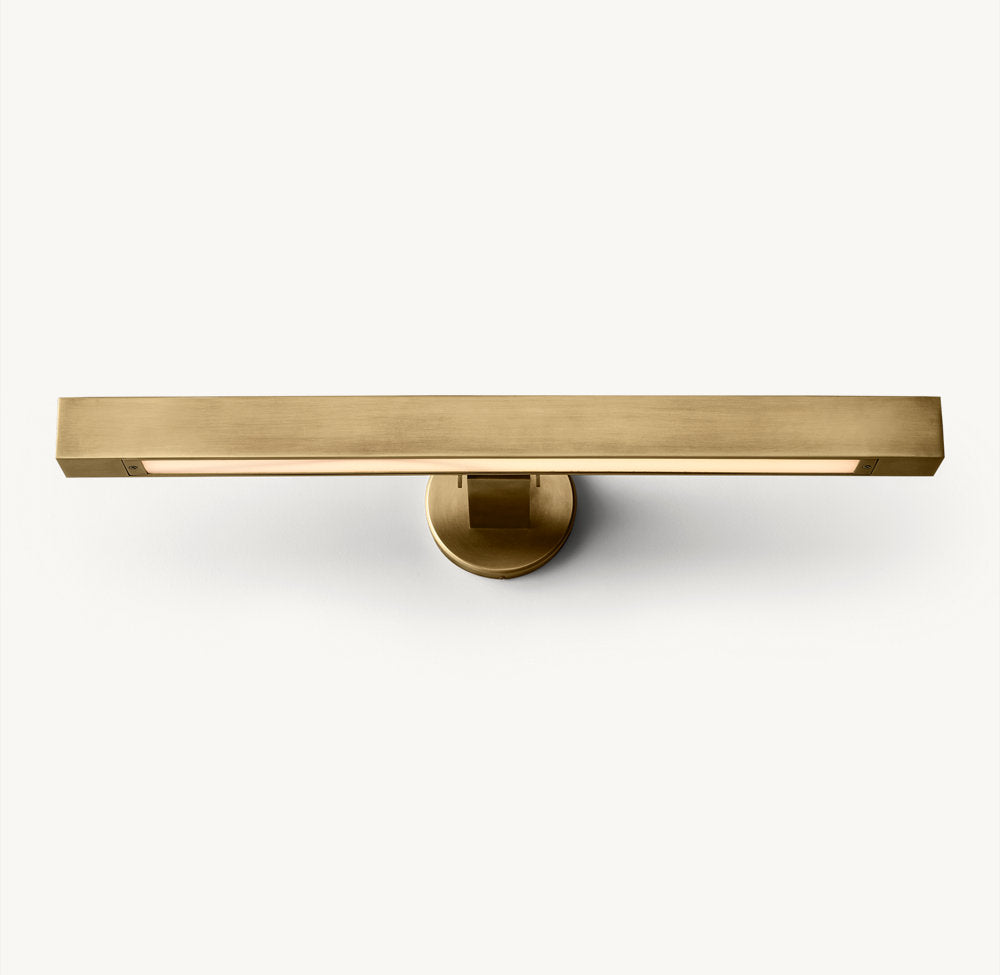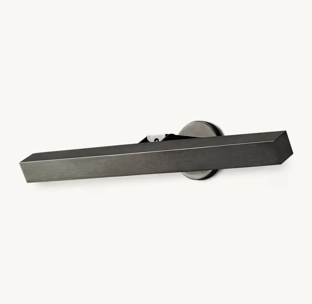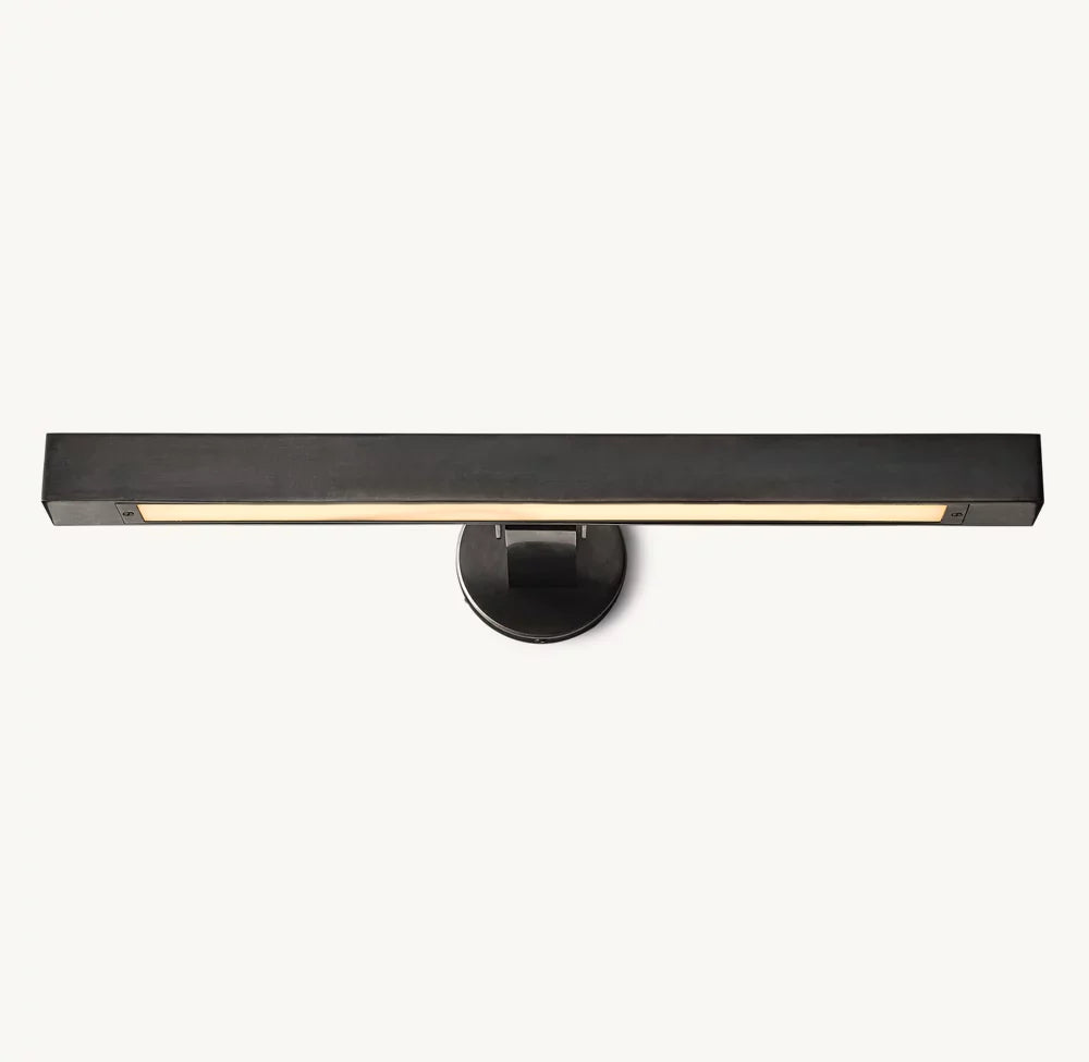 The form of a Beaux Arts candleholder is reinterpreted with clean lines and sharp angles in this fixture from renowned lighting designer Jonathan Browning. The integrated LED panel provides a focused swath of light.