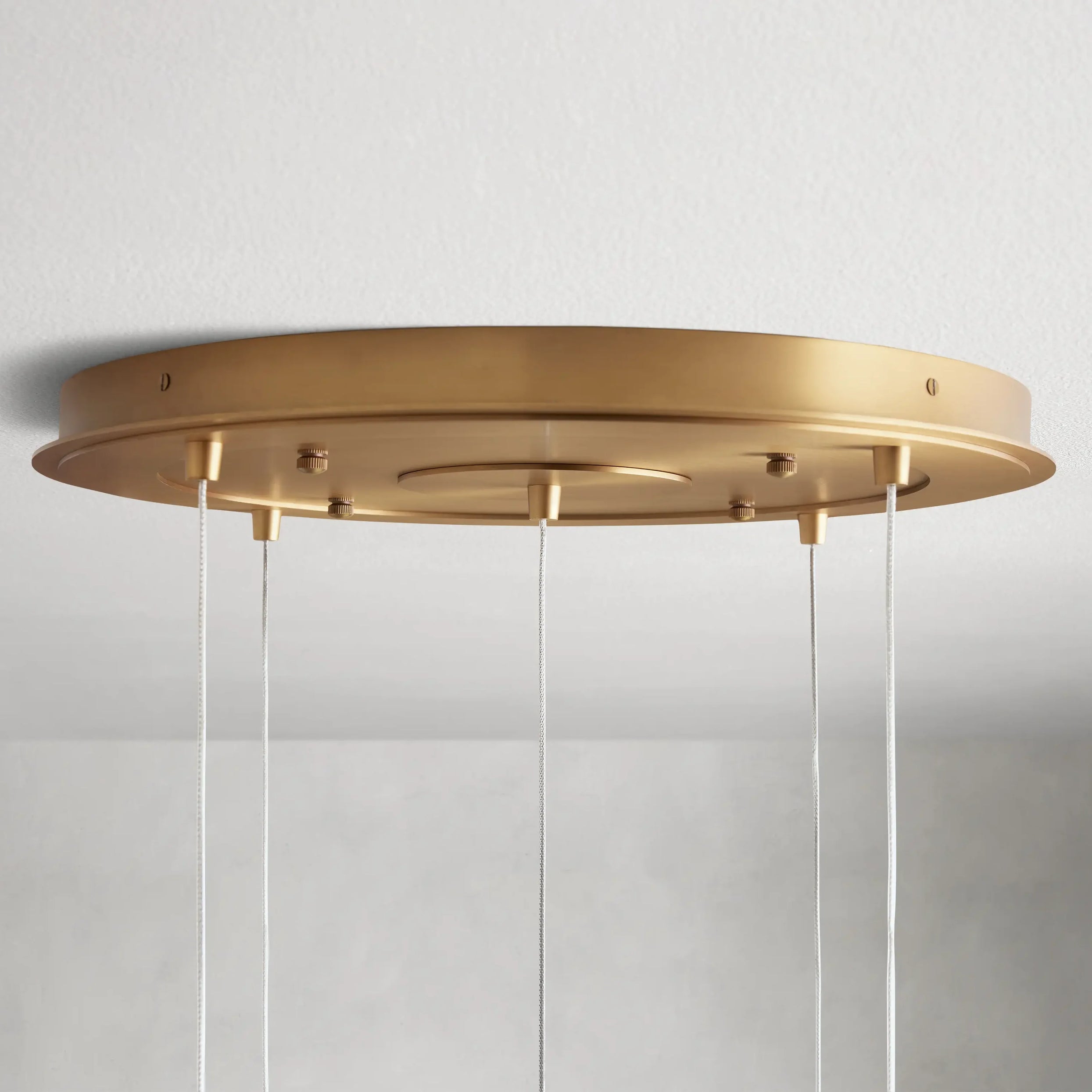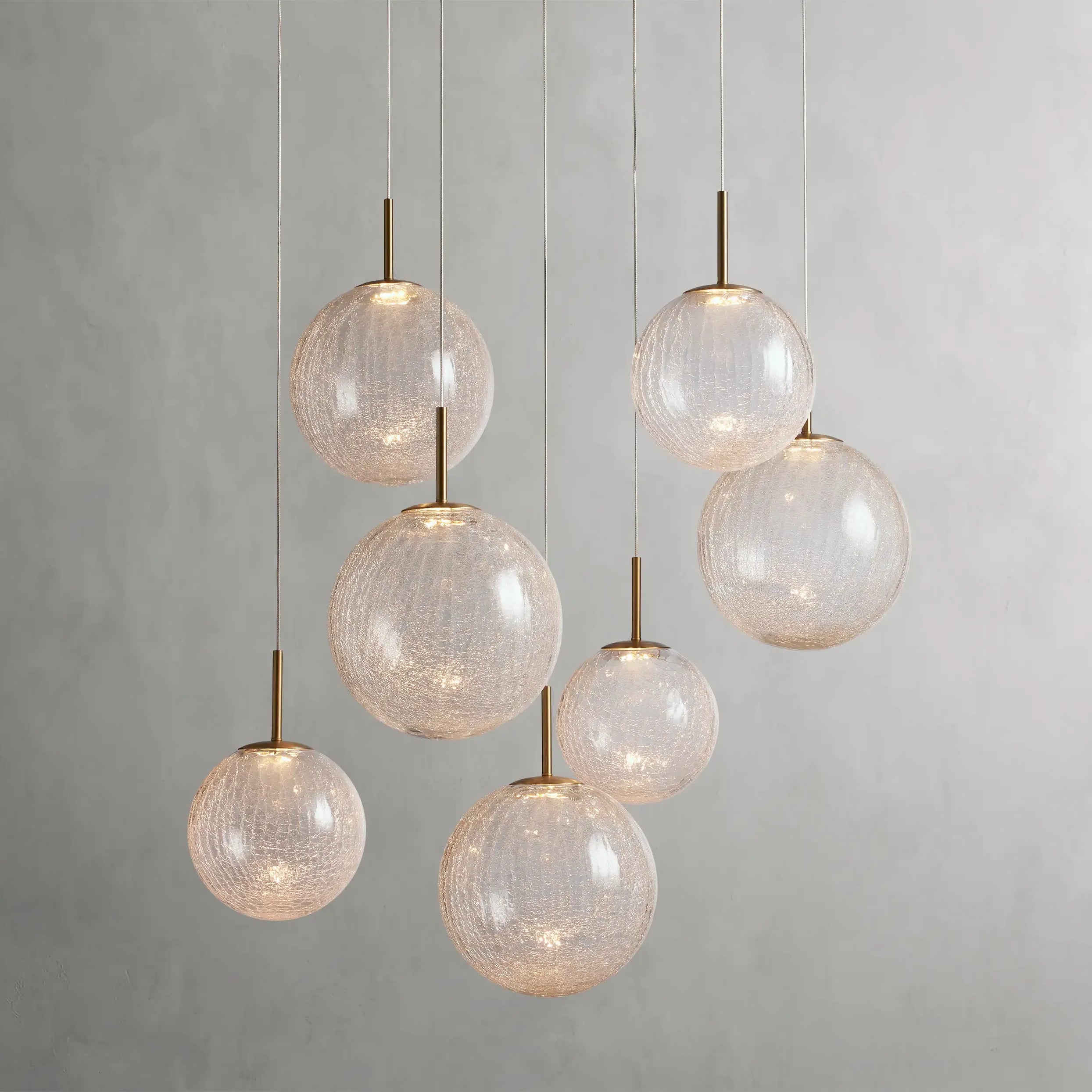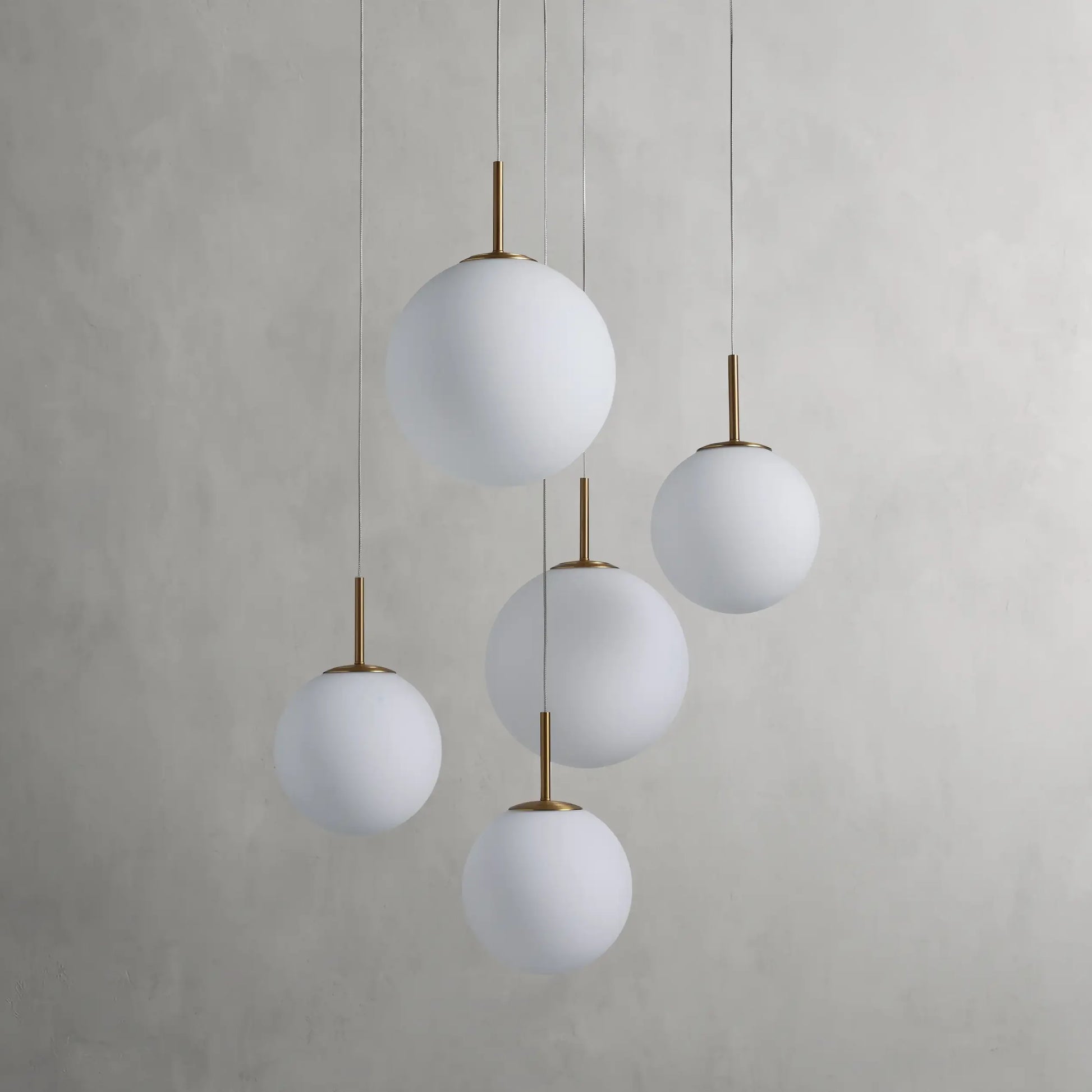 Carefully crafted glass globes hang from modern satin brass hardware from the Casen Lighting Collection. Blown by our artisan partners, each glass sphere is illuminated from within by a built-in LED light, bringing a unique, organic ambiance to your home.