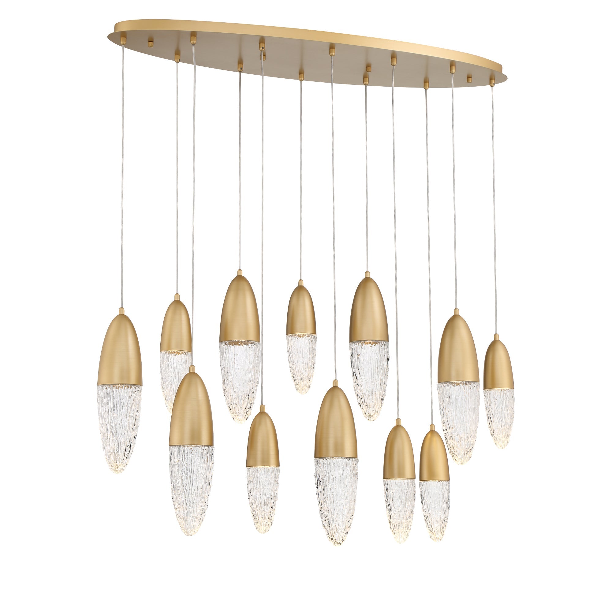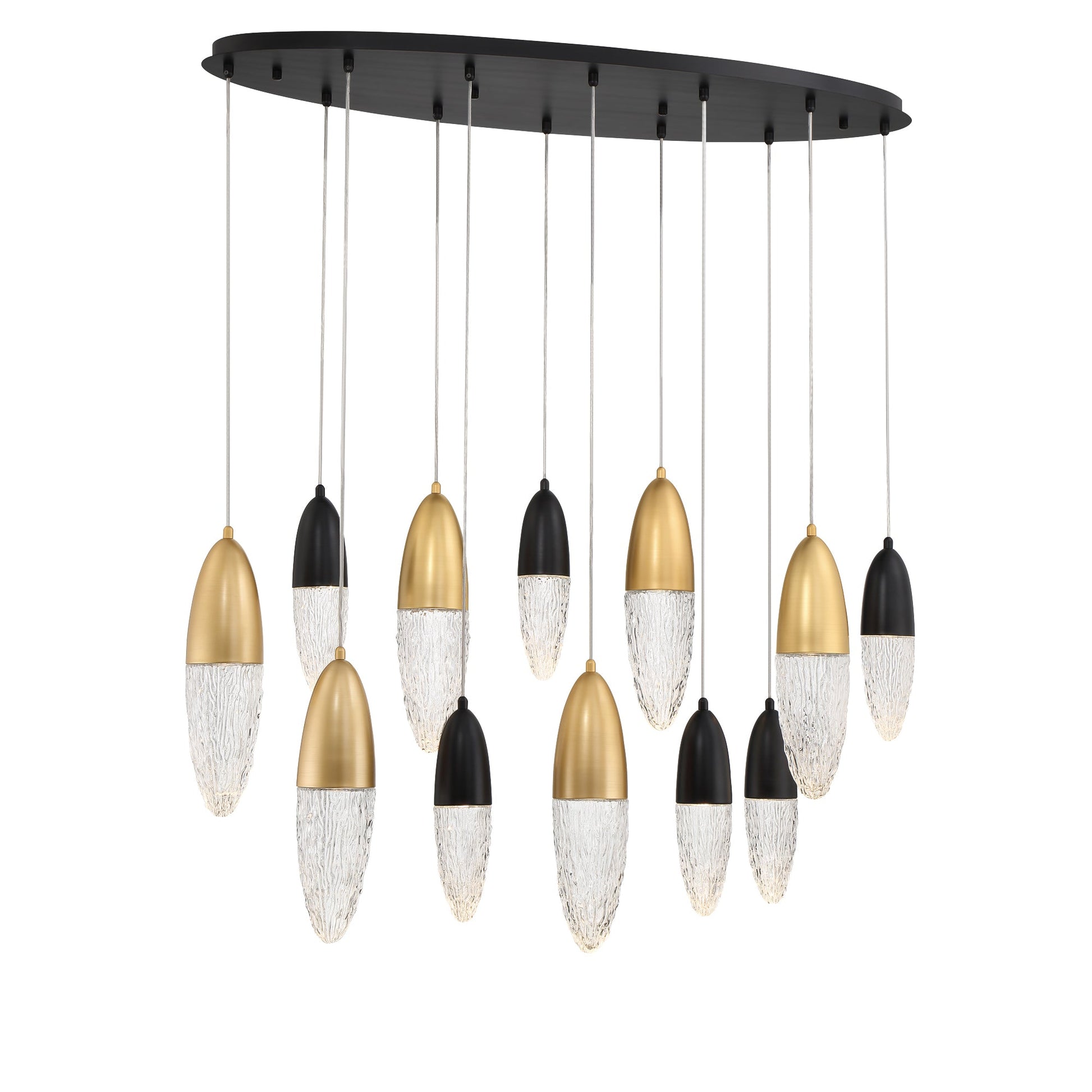 Drawing inspiration from nature, the Ecrou collection showcases large hand-blown glass shades reminiscent of large acorns. The clear glass showcases a detailed wood grain texture and is paired with your choice of matte black, matte gold, or a mix of both finishes to create a stately, stylish piece. For additional lighting options, the collection uses compatible LED fixtures