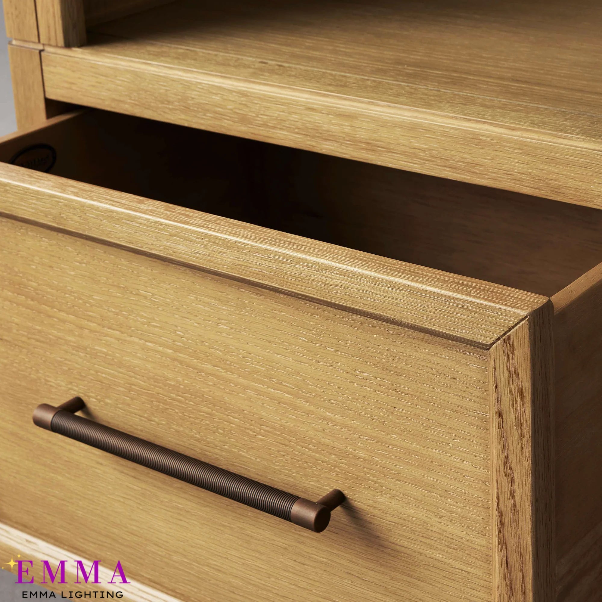 Where soft curves blend seamlessly with the natural beauty of oak, the artisan-crafted Hattie Collection stands ready. With spacious shelves, it offers ample room to showcase your cherished treasures and daily essentials.
