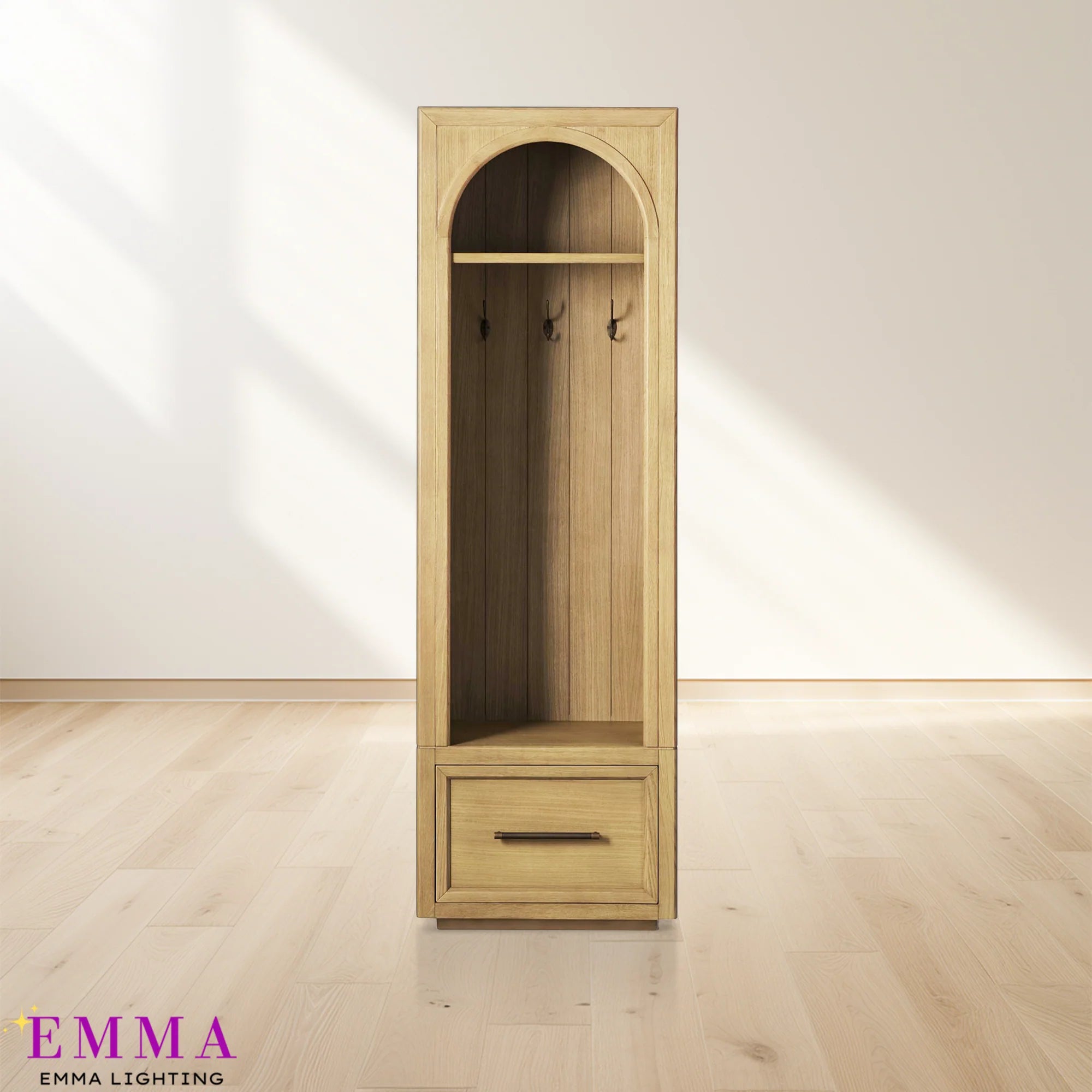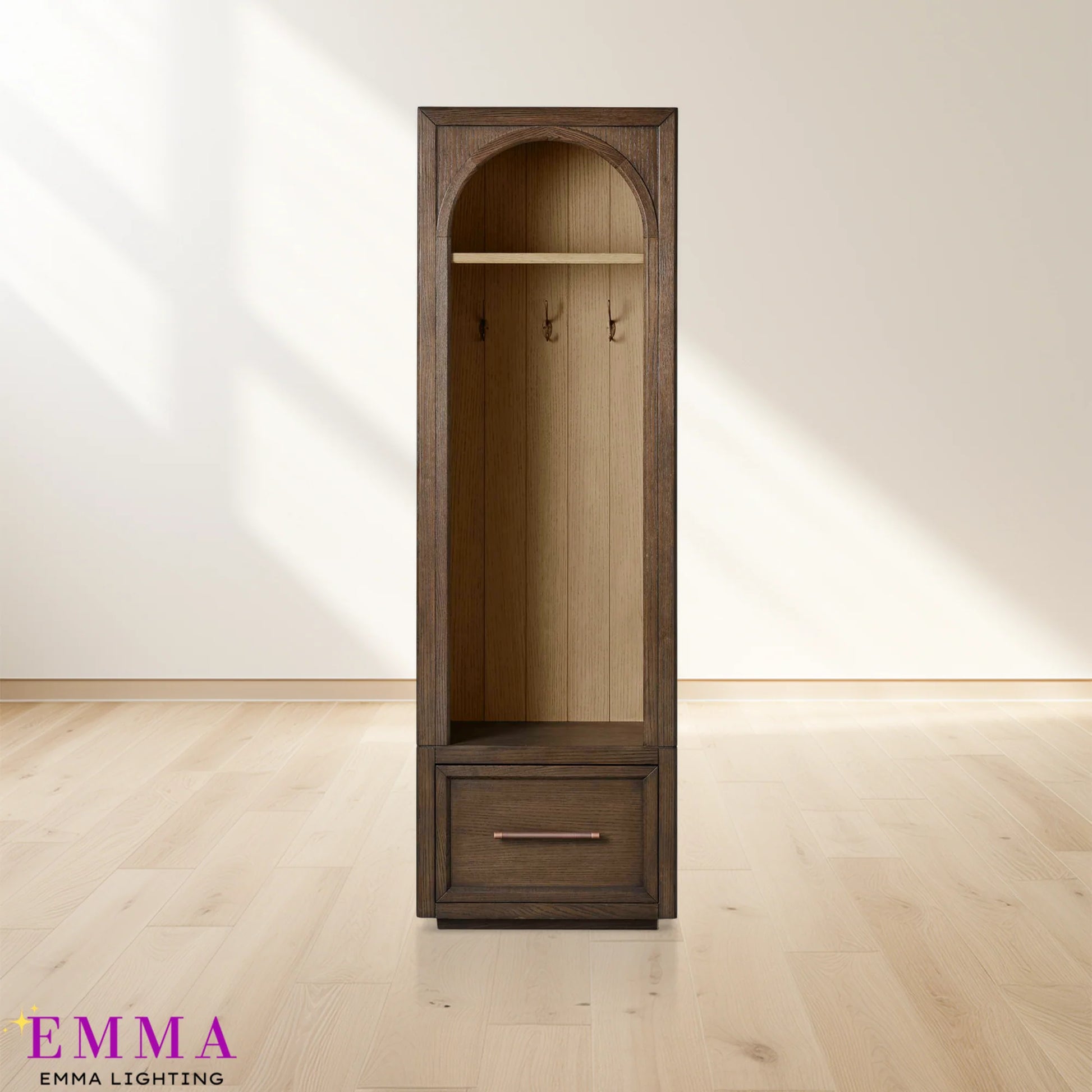 - Designed for versatility, it includes an adjustable or removable shelf, hanging hooks, and a convenient storage drawer.