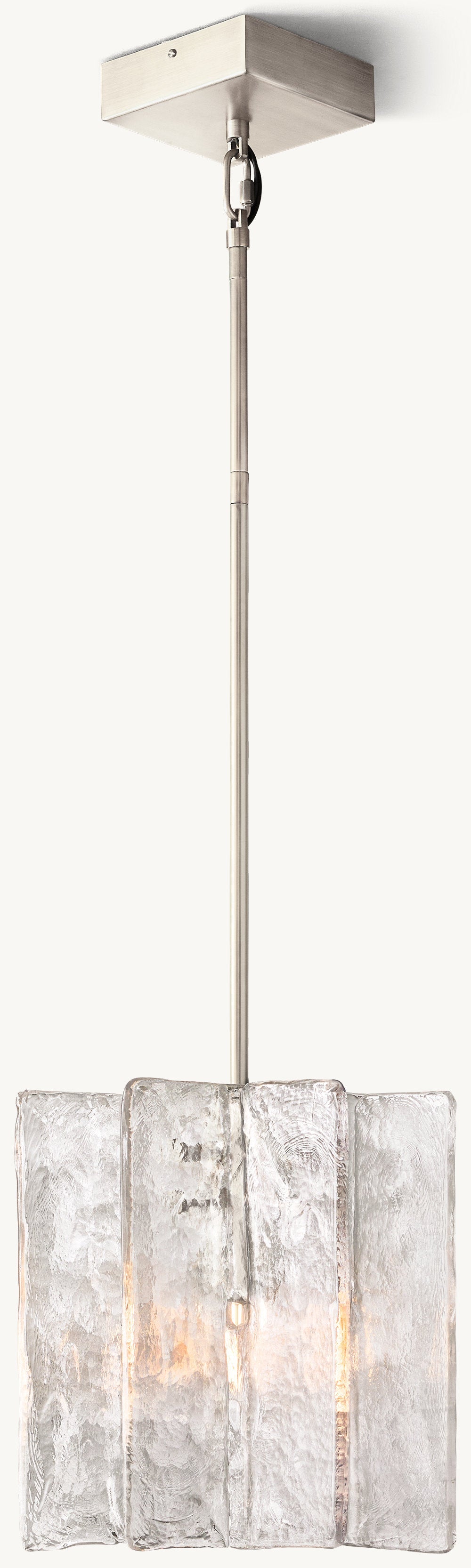 Crafted of solid cast glass, our Lattice collection's interlocking planes recall the geometric precision of the midcentury International Style. A study in repetition and rhythm, the linear form employs open space to lend a weightless feel. Gently rounded corners on the fluid, rippled panes subtly soften the outline, while diffused light glows from within.