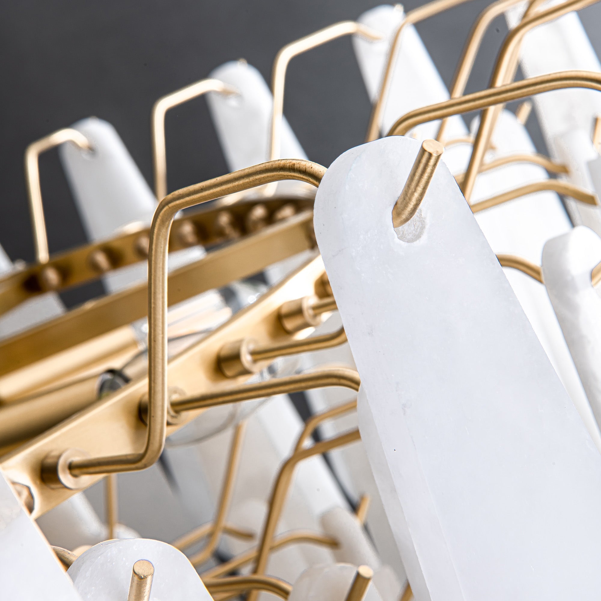 The marble lampshade has uniform light transmission, simple structure and elegant beauty. Under the illumination of the light, it presents a natural sense of flow, soft and elegant. Exquisite craftsmanship, after 72 processes such as grinding and stamping, it presents a delicate texture. Solid lamp body, made of thick material, stable structure, safe and stable.