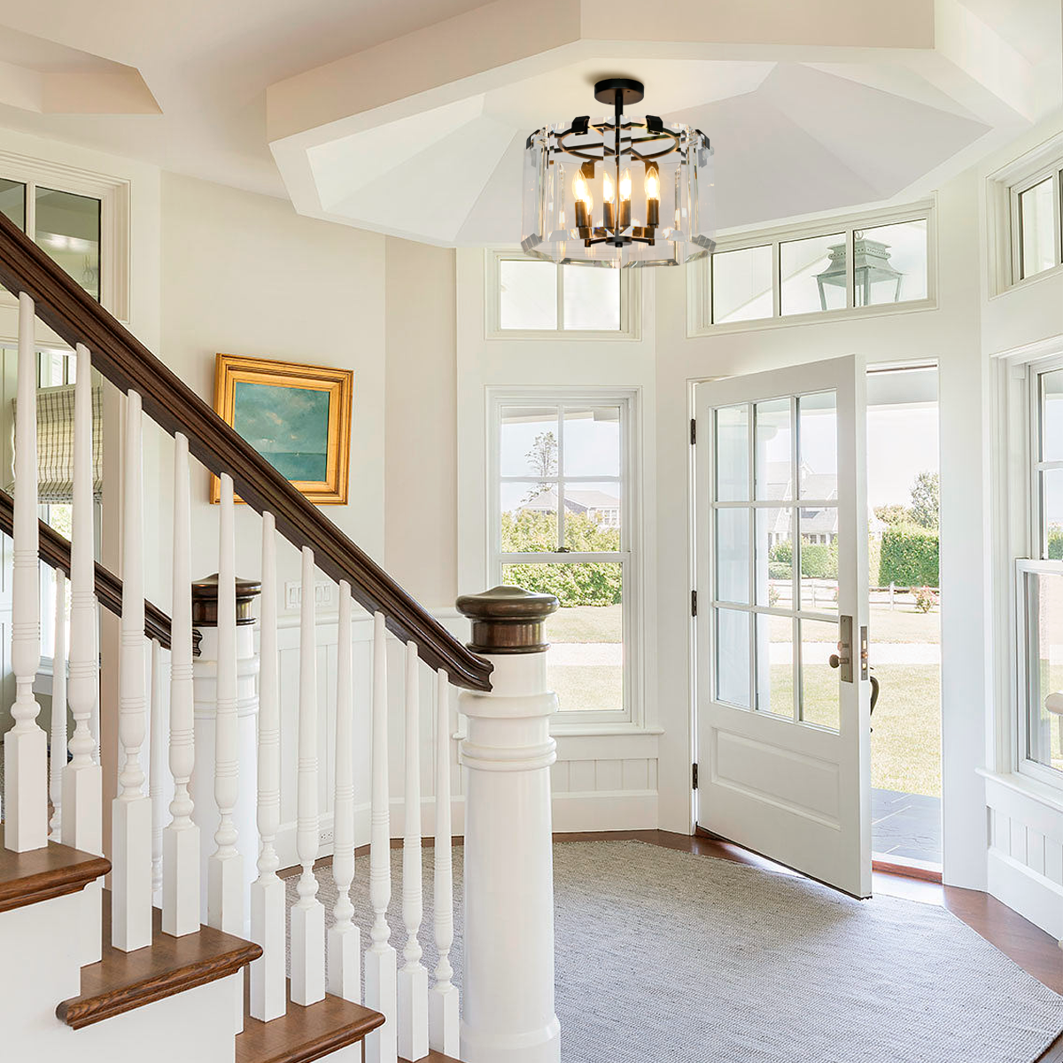 Our stunning Amaya collection artfully juxtaposes clear crystals with sleek black finishes or brass-plated iron to create artful lighting for bathrooms, living rooms, and more.
