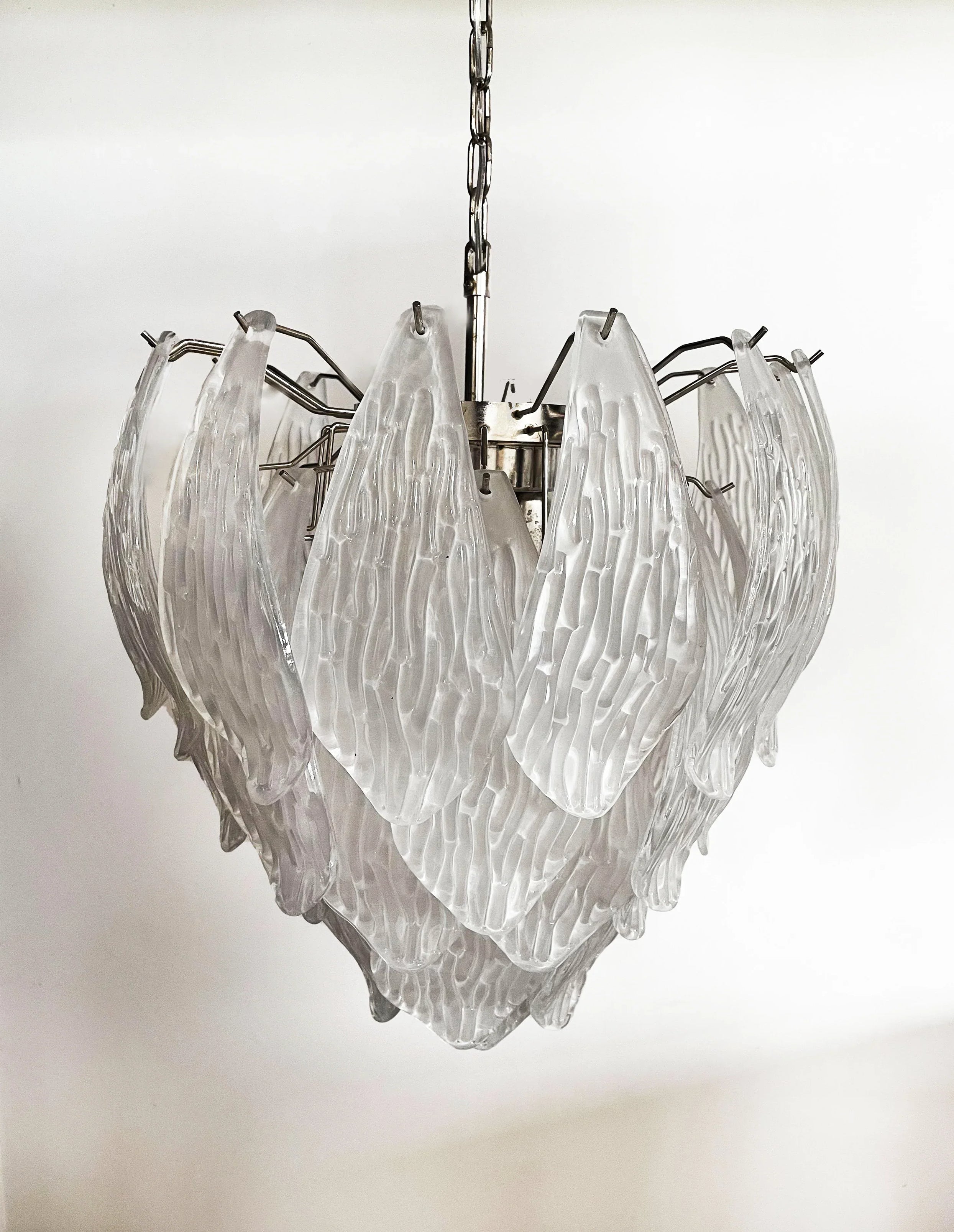 Murano Frosted Carved Glass Leaves Chandelier 21"