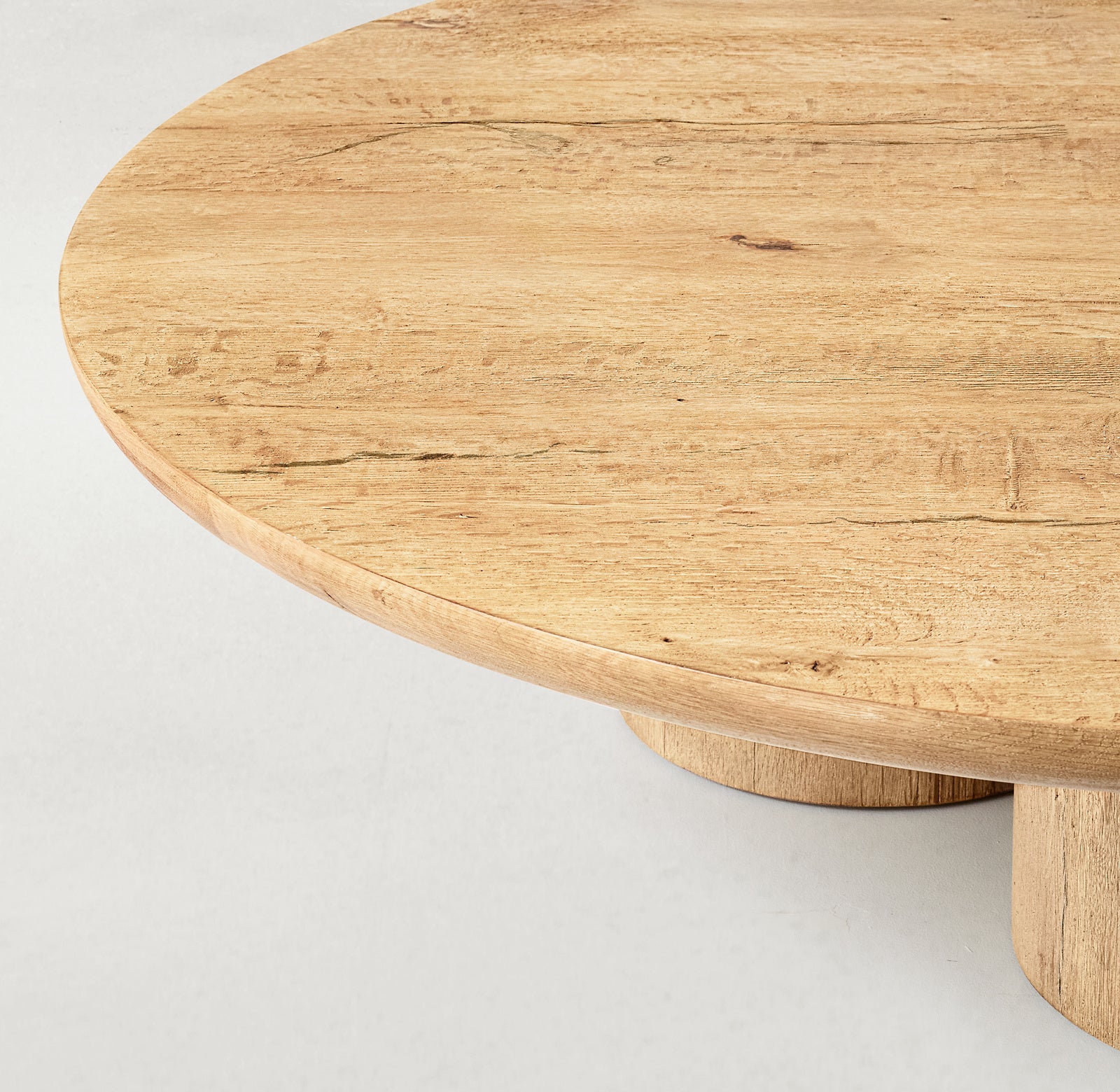 It is inspired by the simplicity of mid-century organic design. Without any embellishment, each piece is carefully handcrafted from wire-brushed American white oak. The high-temperature treatment process creates a unique crackle that further enhances the wood's rich texture, unique grain pattern, and custom character - an elegant juxtaposition of rustic and relaxed, minimalist and refined.