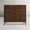 The Pada Drawer Dresser encapsulates minimalist elegance with its spare, sculptural design. Crafted from American oak veneers and accented with slender metal hardware, this piece beautifully balances straight lines and rounded corners, offering a sophisticated storage solution.