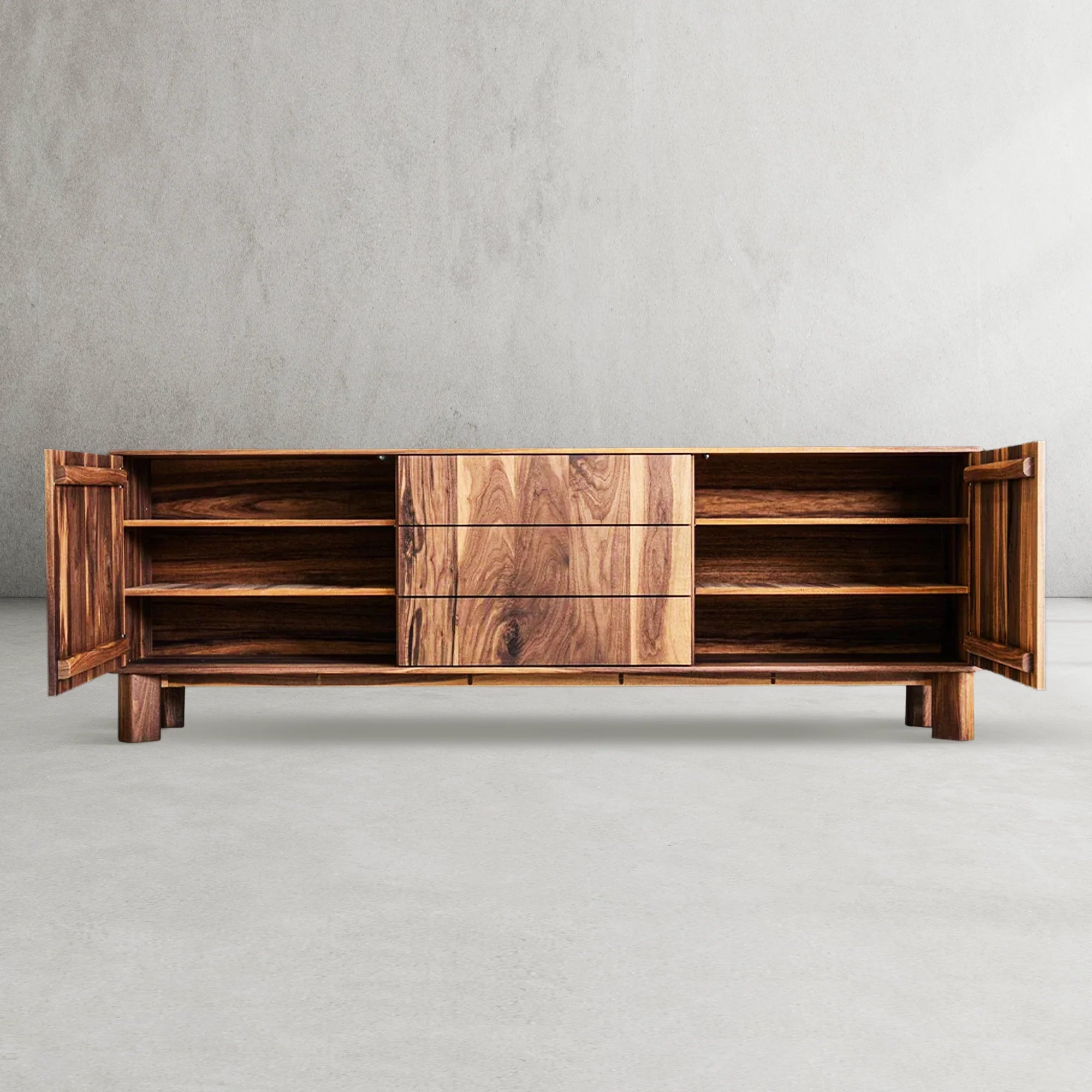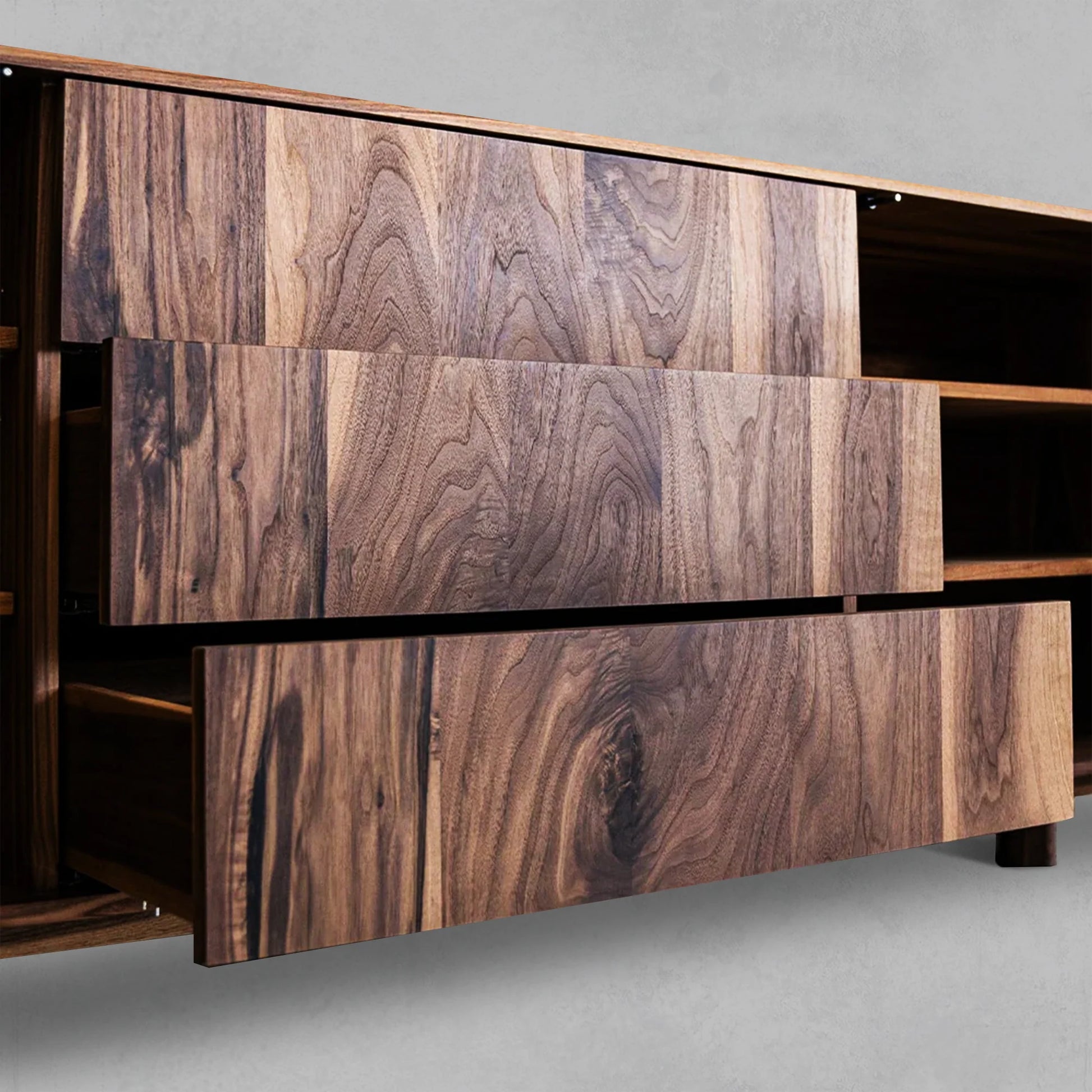 Crafted with precision, the sideboard features a push-to-open mechanism for the drawers and doors, ensuring a seamless and modern user experience.