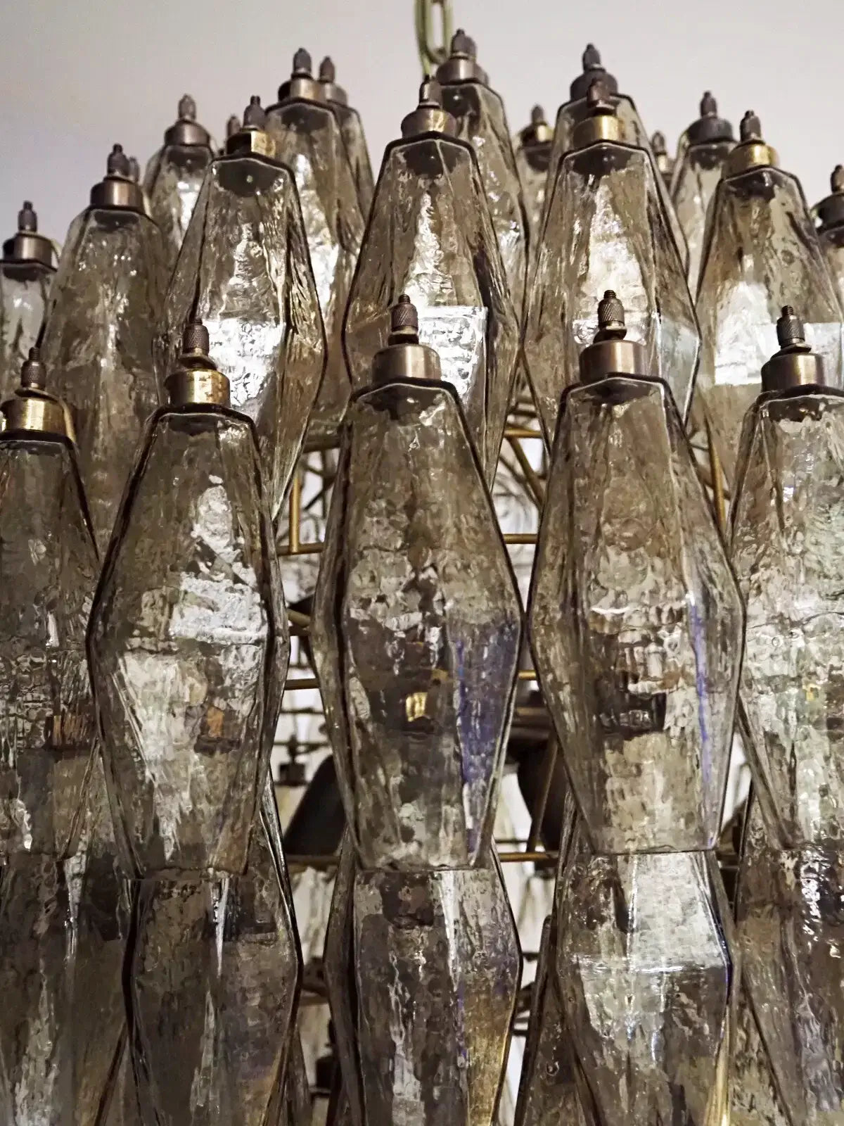 Spherical Murano Poliedri Smoked Glass Chandelier, Transform your living space with the a stunning blend of artistic craftsmanship and luxurious design. Featuring Smoked glass elements, Creates a warm and inviting ambiance, perfect for enhancing any room's decor, Add a touch of luxury to your home.