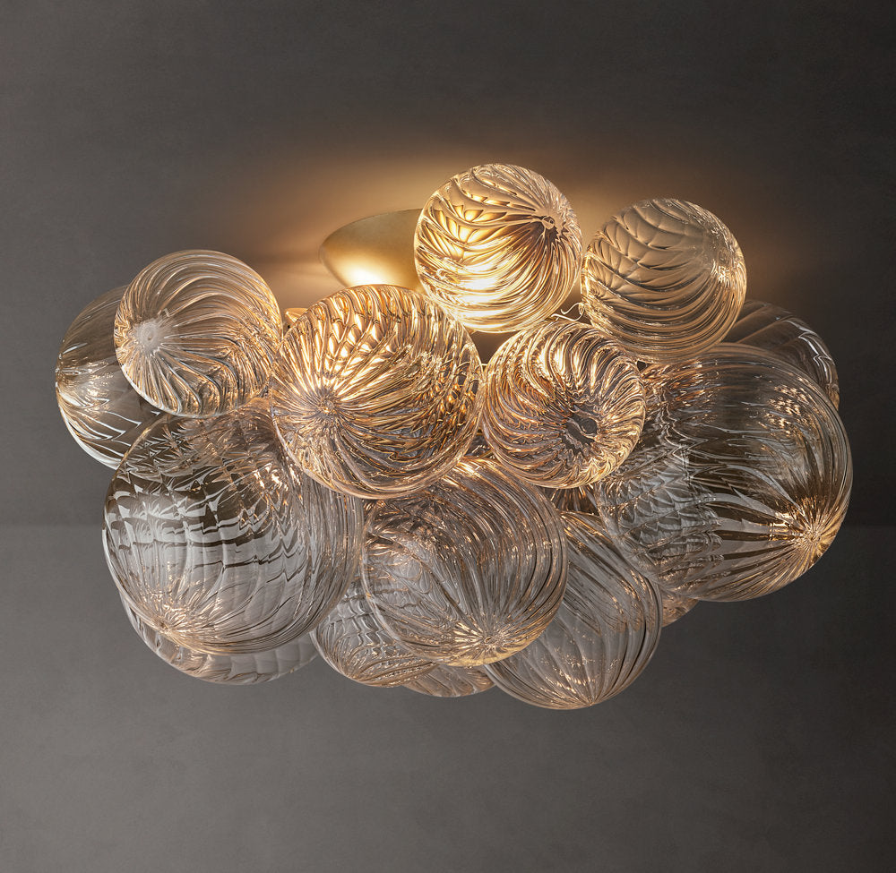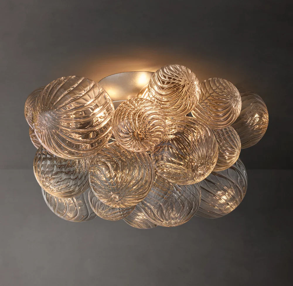 - On a handcrafted steel frame, Talia features 18 mouth-blown rippled glass orbs
